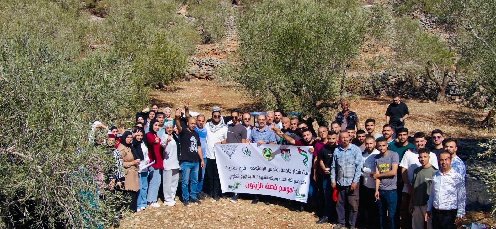 نظّمت جامعة القدس المفتوحة في سلفيت، بالتعاون مع مديرية زراعة سلفيت نشاطًا تطوعيًا لقطف ثمار الزيتون في الأراضي المهددة بالمصادرة من قبل الاحتلال، بمشاركة عدد كبير من طلبة الجامعة، وذلك في إطار تعزيز روح الانتماء الوطني والعمل التطوعي، ومساندة المزارعين في موسم الزيتون ودعم صمودهم في أراضيهم.
