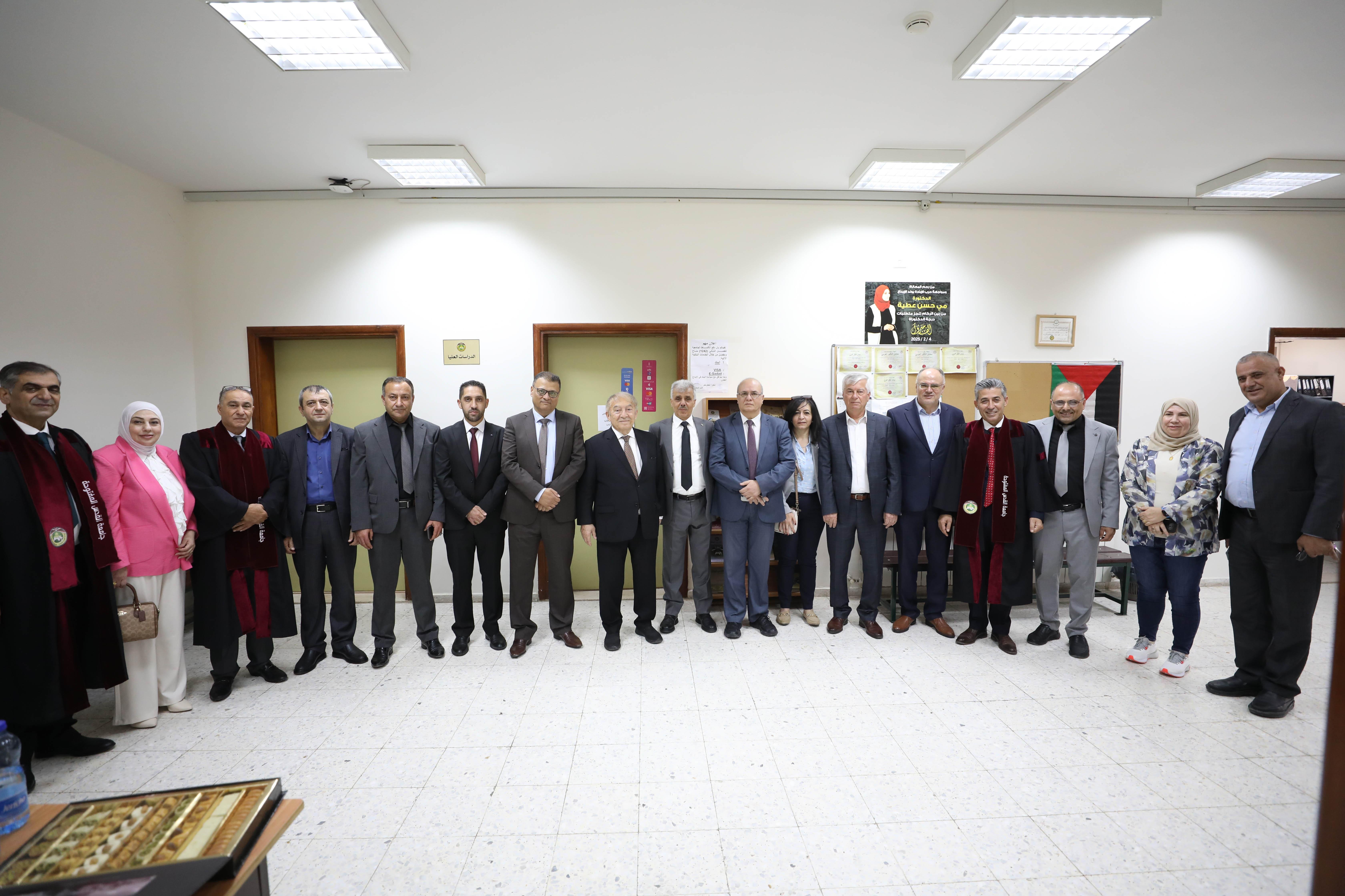 خلال لقاءٍ علميٍّ مميّز خُصِّص لمناقشة رسالة ماجستير في عمادة الدراسات العليا، استقبل رئيس جامعة القدس المفتوحة أ. د. إبراهيم الشاعر نخبةً من الشخصيات الرسمية والاقتصادية من خارج الجامعة، يتقدّمهم معالي وزير التربية والتعليم العالي د. أمجد برهم، ومعالي وزير الصناعة أ. عرفات عصفور، ومعالي وزير الاقتصاد الوطني الفلسطيني السابق أ. خالد العسيلي، ورئيس مؤسسة المواصفات والمقاييس الفلسطينية م. حيدر رمضان حجة، ووكيل وزارة الصناعة أ. زغلول سمحان.