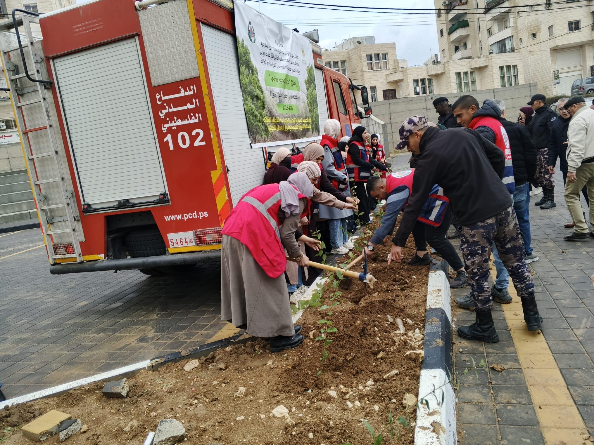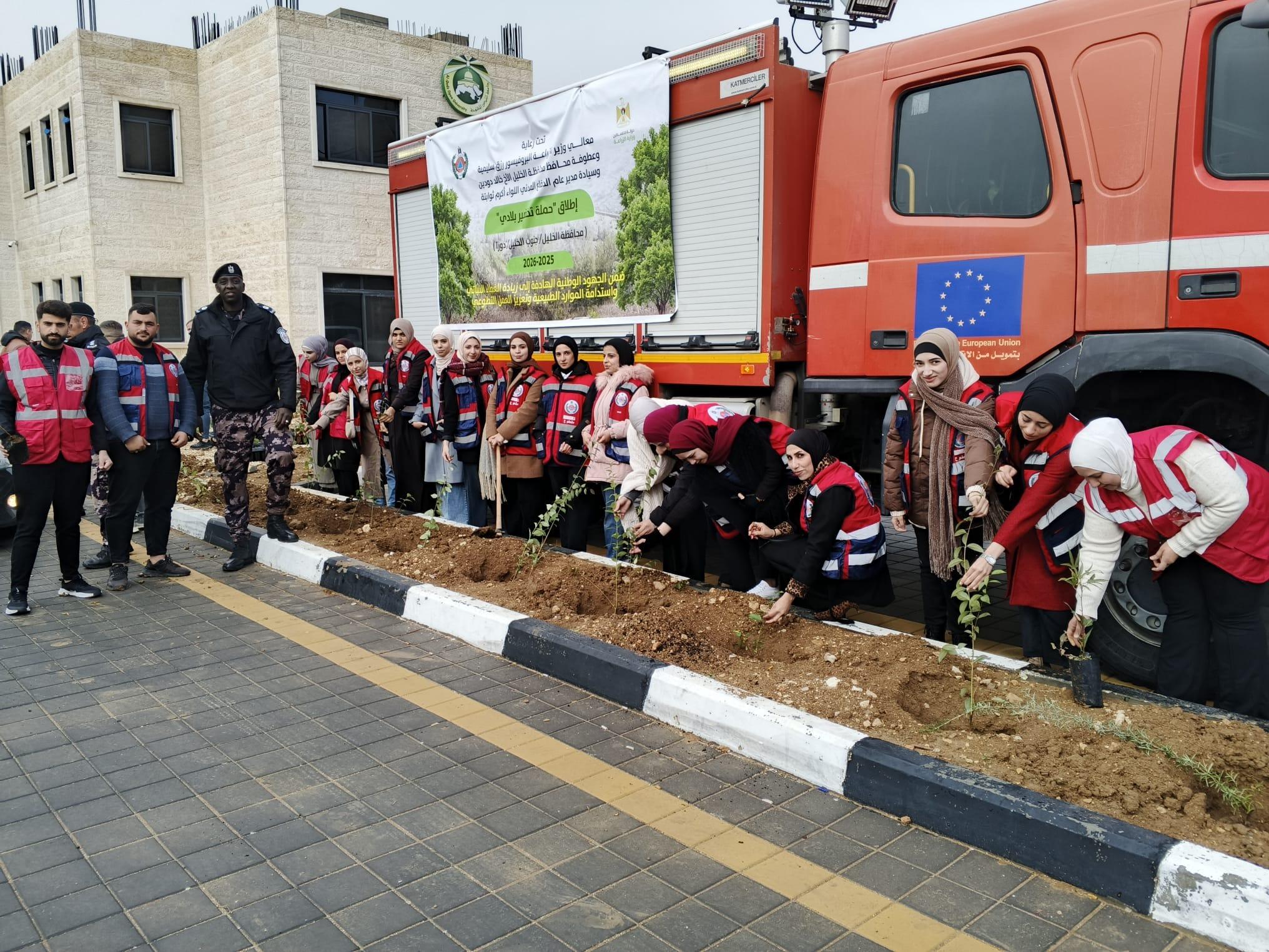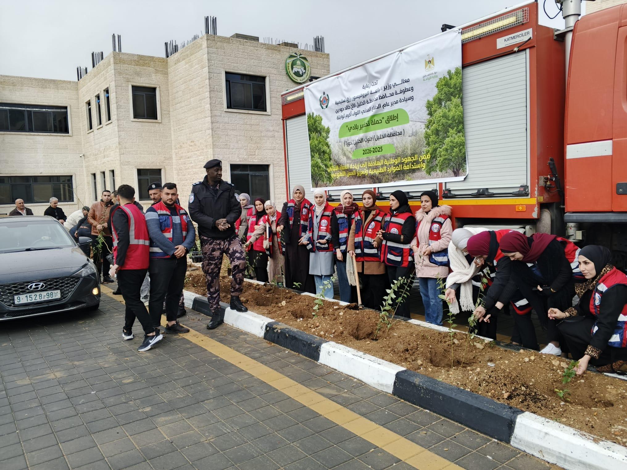 شارك فرع جامعة القدس المفتوحة في دورا، الأربعاء 2025/12/10، في فعاليات إطلاق الحملة الوطنية "تخضير بلادي"، التي تُنفَّذ تحت رعاية معالي وزير الزراعة أ. د. رزق سليمية، وعطوفة محافظ محافظة الخليل السيد خالد دودين، ومدير عام الدفاع المدني اللواء أكرم ثوابتة، بهدف تعزيز الرقعة الخضراء والحفاظ على البيئة والموارد الطبيعية في محافظات الوطن. وشهدت الفعالية حضورًا واسعًا من ممثلي المؤسسات الرسمية والأمنية والمجتمعية، إلى جانب مجلس اتحاد الطلبة وحركة الشبيبة الطلابية وطلبة متطوعين من الفرع.