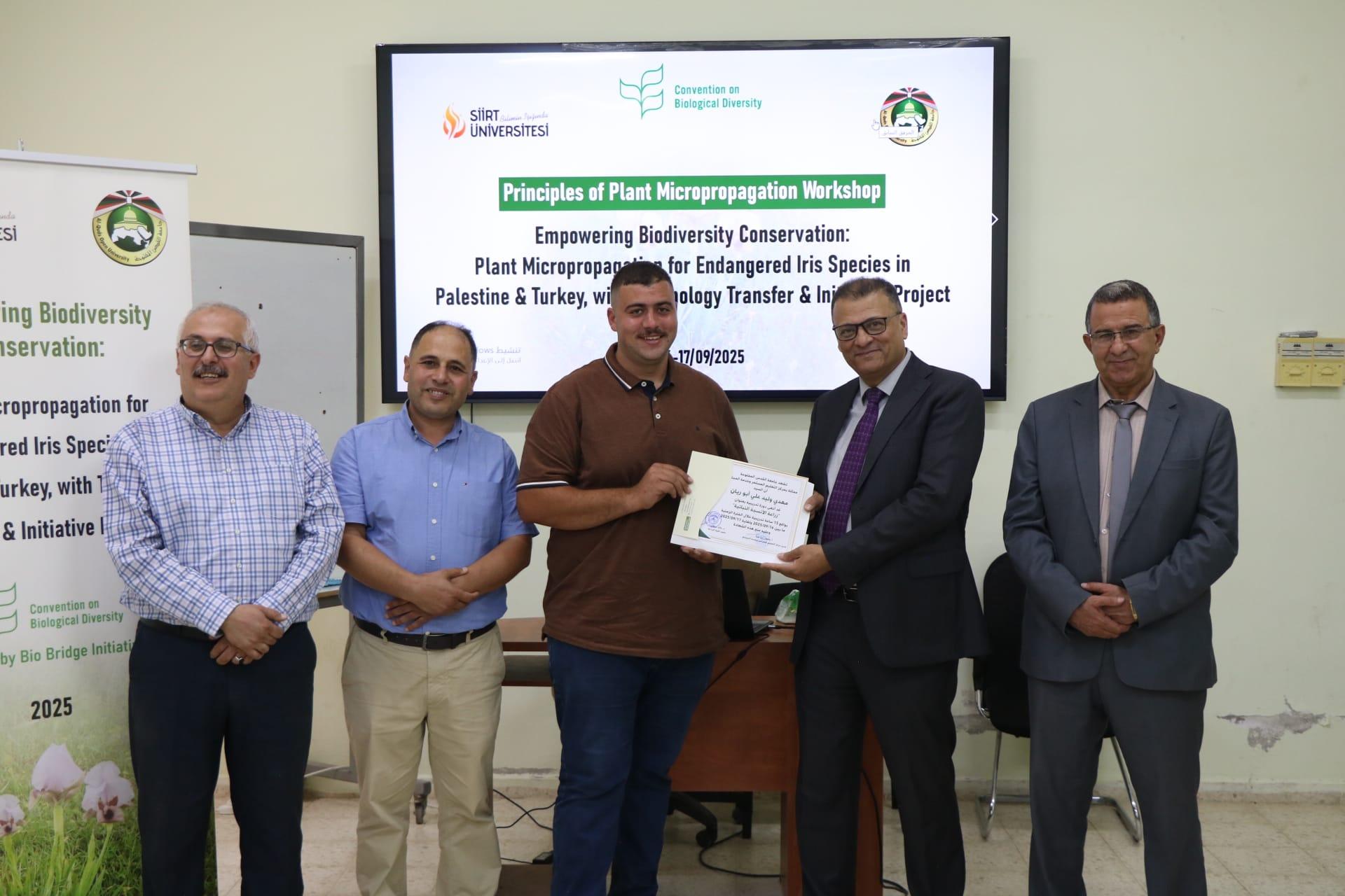 وافتتح عميد كلية الزراعة د. خالد حردان الورشة، متناولاً في كلمته أهمية التنوع الحيوي في فلسطين وضرورة الحفاظ على نبات سوسنة نابلس المهدد بالانقراض، مشدداً على أهمية حماية النباتات النادرة وإكثارها من خلال تقنيات زراعة الأنسجة، كما أعلن عن خطة لإنشاء حديقة في حرم الجامعة برام الله تضم النباتات النادرة والمهددة بالانقراض في فلسطين.