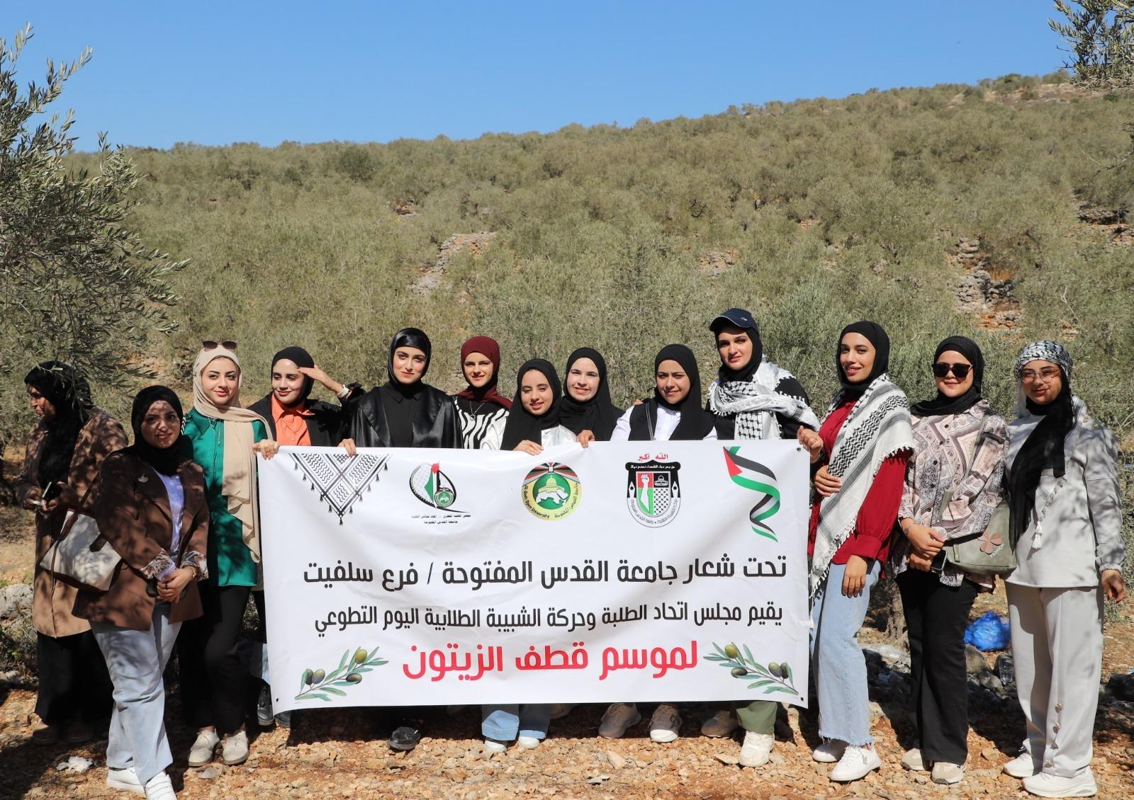 نظّمت جامعة القدس المفتوحة في سلفيت، بالتعاون مع مديرية زراعة سلفيت نشاطًا تطوعيًا لقطف ثمار الزيتون في الأراضي المهددة بالمصادرة من قبل الاحتلال، بمشاركة عدد كبير من طلبة الجامعة، وذلك في إطار تعزيز روح الانتماء الوطني والعمل التطوعي، ومساندة المزارعين في موسم الزيتون ودعم صمودهم في أراضيهم.