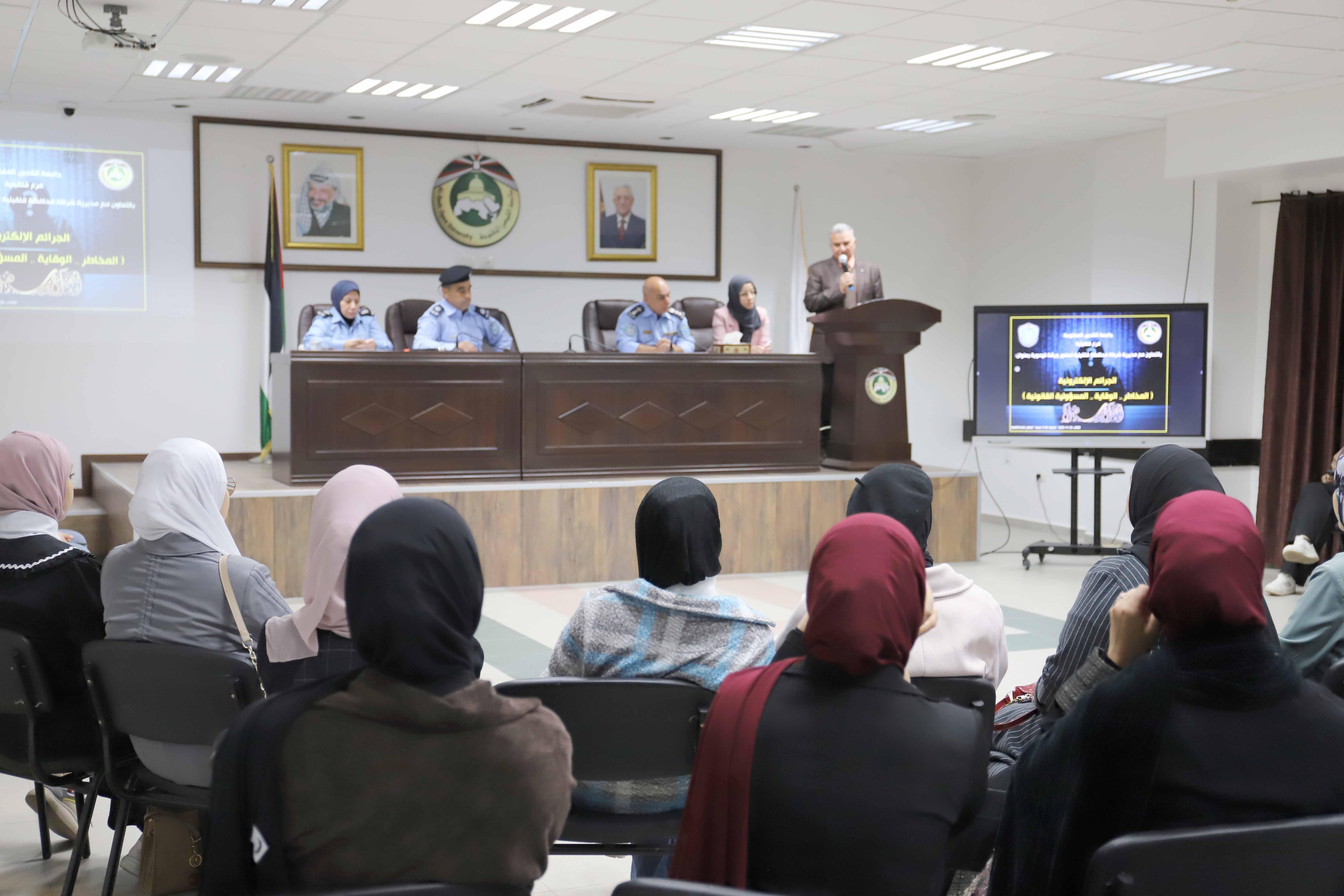 من جانبه، ألقى مدير إدارة الخدمات الشرطية، العقيد إياد عيسى، كلمة أشاد فيها بالتعاون المستمر بين الشرطة والجامعة، مؤكدًا أن "الجرائم الإلكترونية باتت من القضايا الحساسة التي تستهدف جميع فئات المجتمع، خاصة فئة الشباب، الأمر الذي يستدعي نشر التوعية بأشكال الجريمة الإلكترونية وطرق الوقاية منها، إضافة إلى التعريف بالمسؤولية القانونية المترتبة على مستخدمي الفضاء الرقمي".