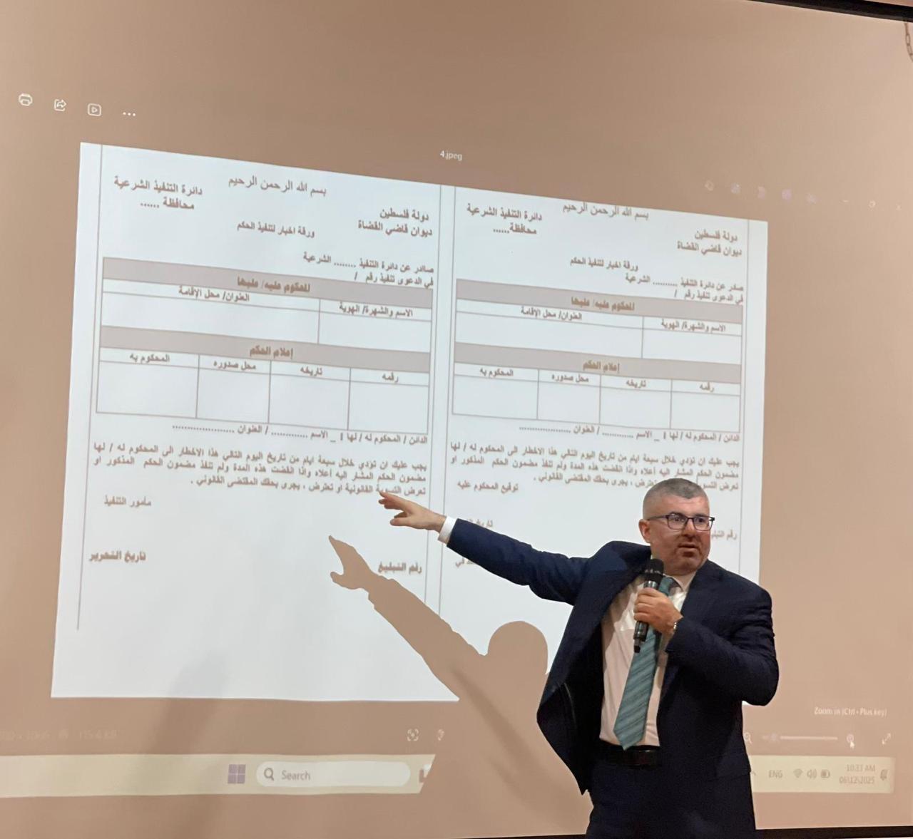 نظم فرع جامعة القدس المفتوحة في نابلس، السبت 6/12/2025، نشاطًا تدريبيًا متخصصًا استهدف طلبة تخصص "القضاء الشرعي" من خلال محاضرة ألقاها القاضي د. عمار ظاهر، رئيس محكمة طوباس.