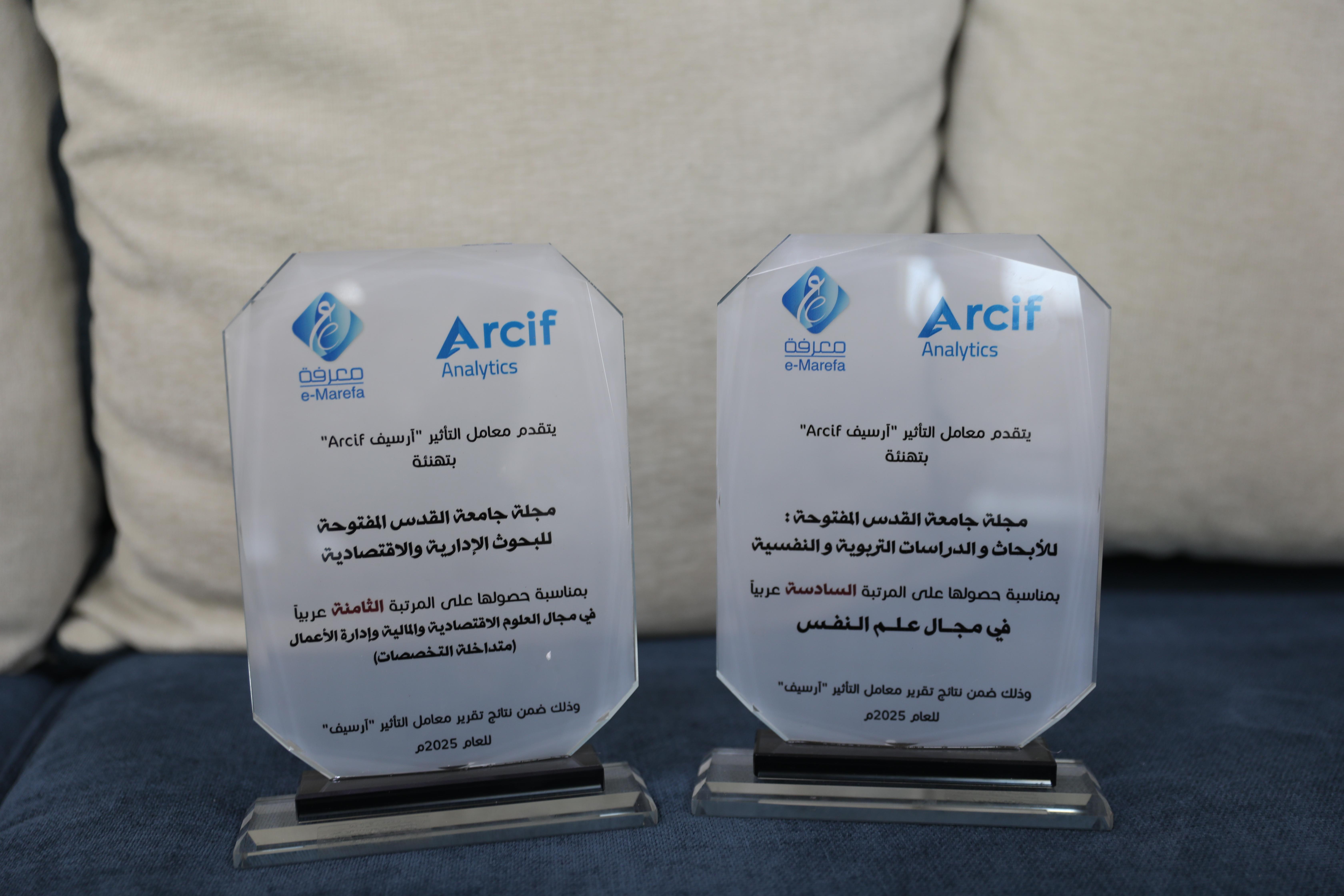 في إنجاز علمي وبحثي جديد يعكس مكانتها الأكاديمية المتقدمة، حقّقت جامعة القدس المفتوحة تميّزًا لافتًا على المستوى العربي، بعد حصول مجلة جامعة القدس المفتوحة للبحوث الإدارية والاقتصادية على المرتبة الثامنة عربيًا في مجالات العلوم الاقتصادية والمالية وإدارة الأعمال، وحصلت مجلة جامعة القدس المفتوحة للأبحاث والدراسات التربوية والنفسية على المرتبة السادسة عربيًا في مجال علم النفس، ما يعكس دورها الريادي في دعم البحث العلمي التربوي والنفسي. ويؤكد هذا التقدم على جودة الأبحاث المنشورة فيها والتزامها بالمعايير العلمية العالمية، وذلك وفق تقرير معامل التأثير العربي آرسيف ARCIF لعام 2025.