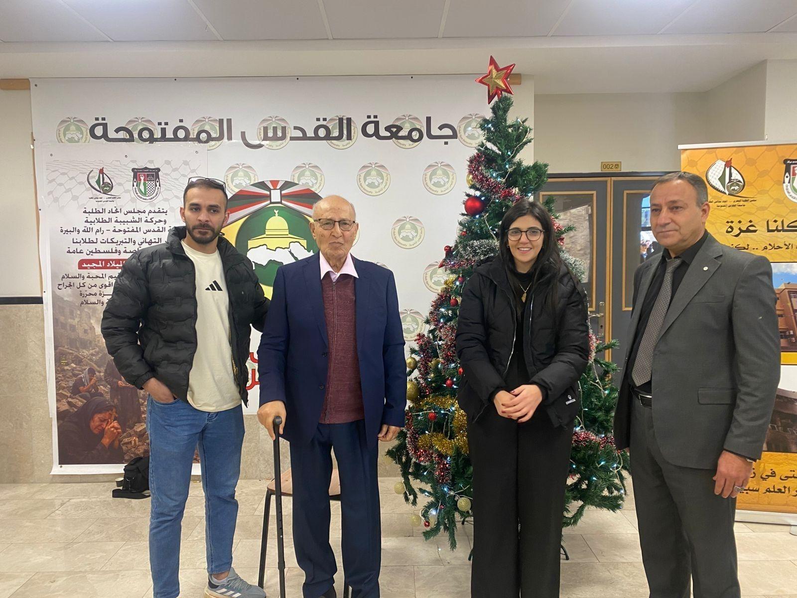 أضاءت جامعة القدس المفتوحة - فرع رام الله والبيرة، بحضور عدد من الشخصيات الاعتبارية والرسمية ممثلة بعضو اللجنة المركزية لحركة فتح د. نبيل شعث، شجرة الميلاد المجيد في حرم الجامعة، وذلك في احتفال نظمه مجلس اتحاد الطلبة وحركة الشبيبة الطلابية.