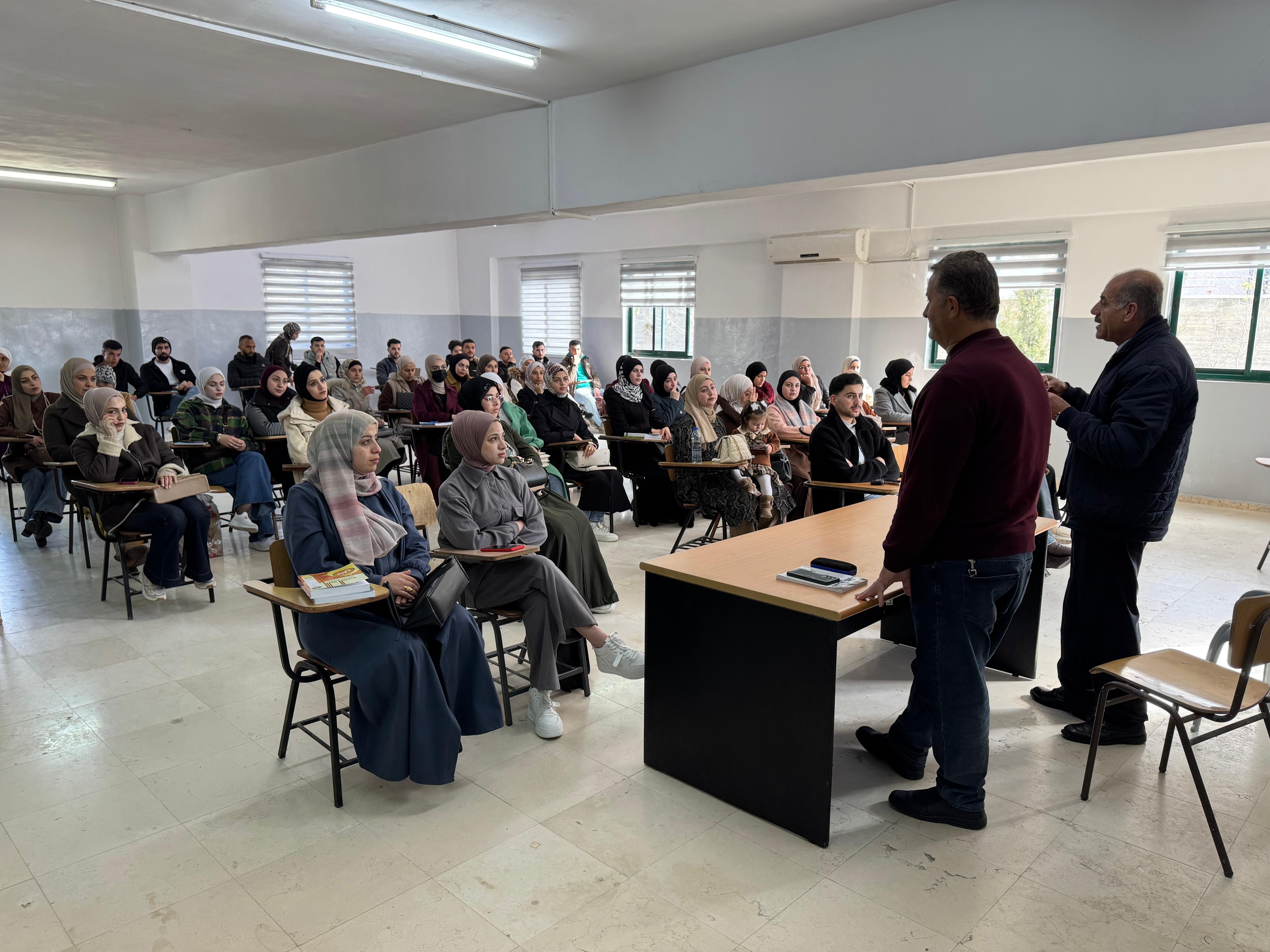 ومن جهة أخرى، قدّم عضوا هيئة التدريس في الكلية د. شادي عواد وأ. مريم مسودة، شرحًا مفصّلًا حول مقرر التربية العملية، تطرّقا فيه إلى جميع ما يتعلق بالمقرر من تعليمات وتوجيهات وإرشادات، إضافة إلى توضيح آلية التقييم ومتطلبات التدريب، والإجابة عن استفسارات الطلبة.