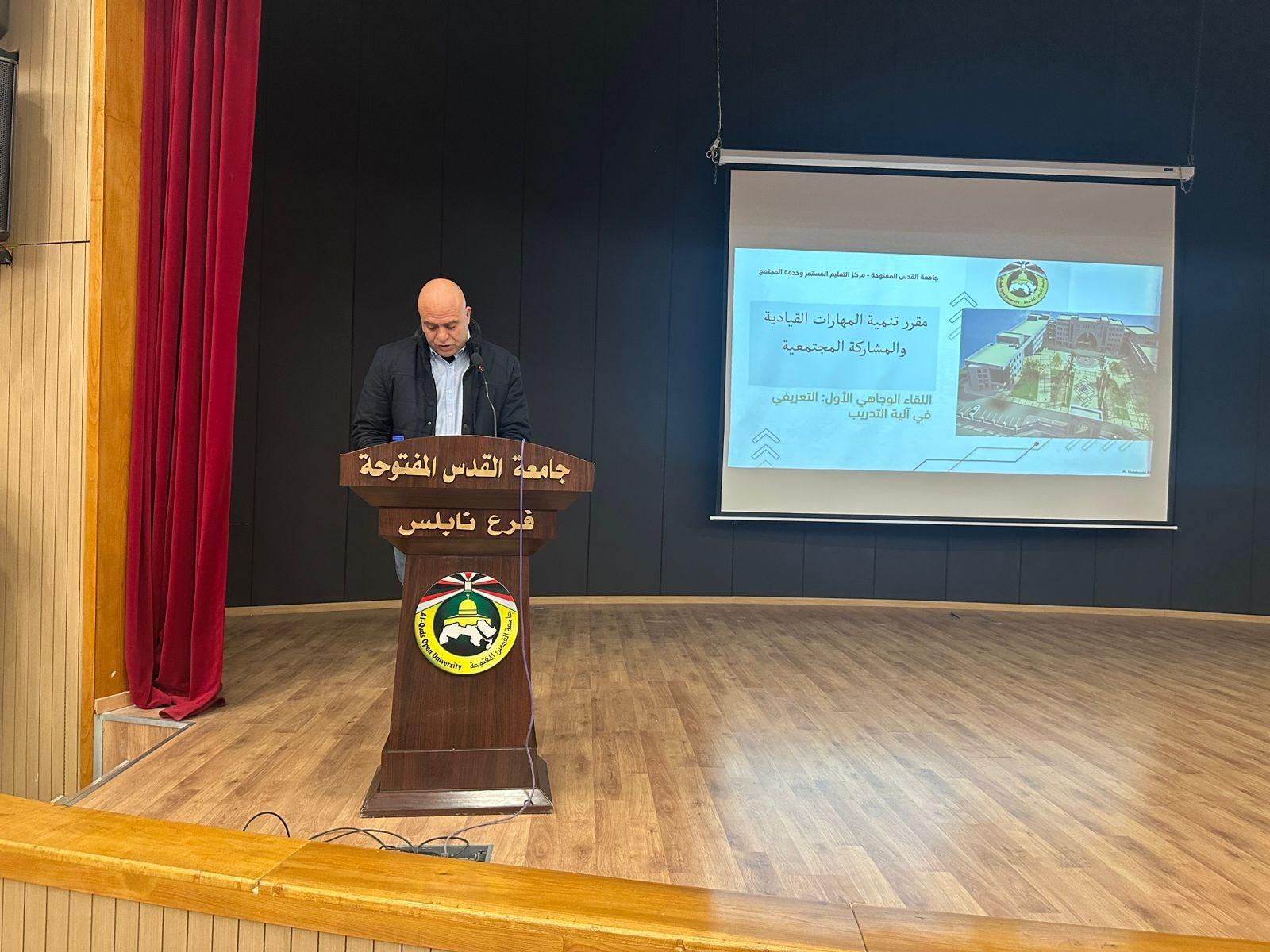 "القدس المفتوحة" في نابلس تعقد اللقاء الوجاهي الأول لمساق "تنمية المهارات القيادية والمشاركة المجتمعية"