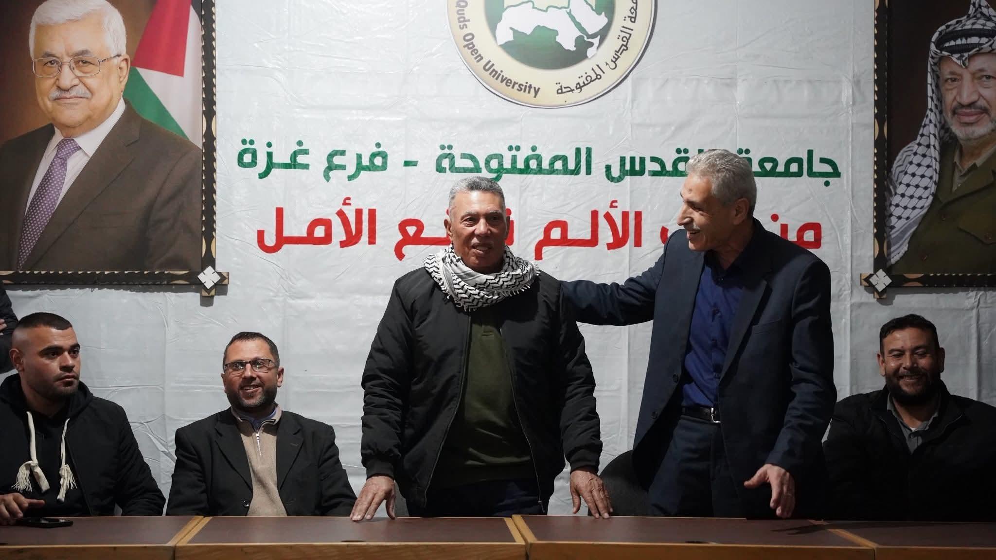وفي كلمته بالمناسبة، رحّب رئيس لجنة إدارة فروع الجامعة في قطاع غزة د. رأفت جودة بالحضور، ناقلًا تحيات رئيس الجامعة أ. د. إبراهيم الشاعر، ومؤكداً الدور الوطني الذي تضطلع به الجامعة في خدمة أبنائها وتمكينهم من مواصلة مسيرتهم التعليمية.