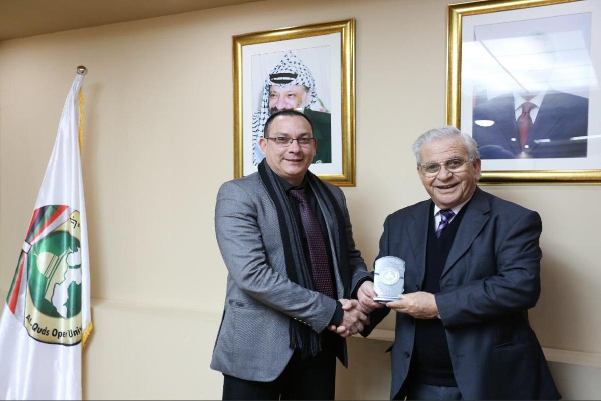 The President of Al-Quds Open University, Prof. Younes Amro, received the Ambassador of the Republic of Nicaragua to Palestine, H.E. Roberto Morales Tuesday 12/14/2021,