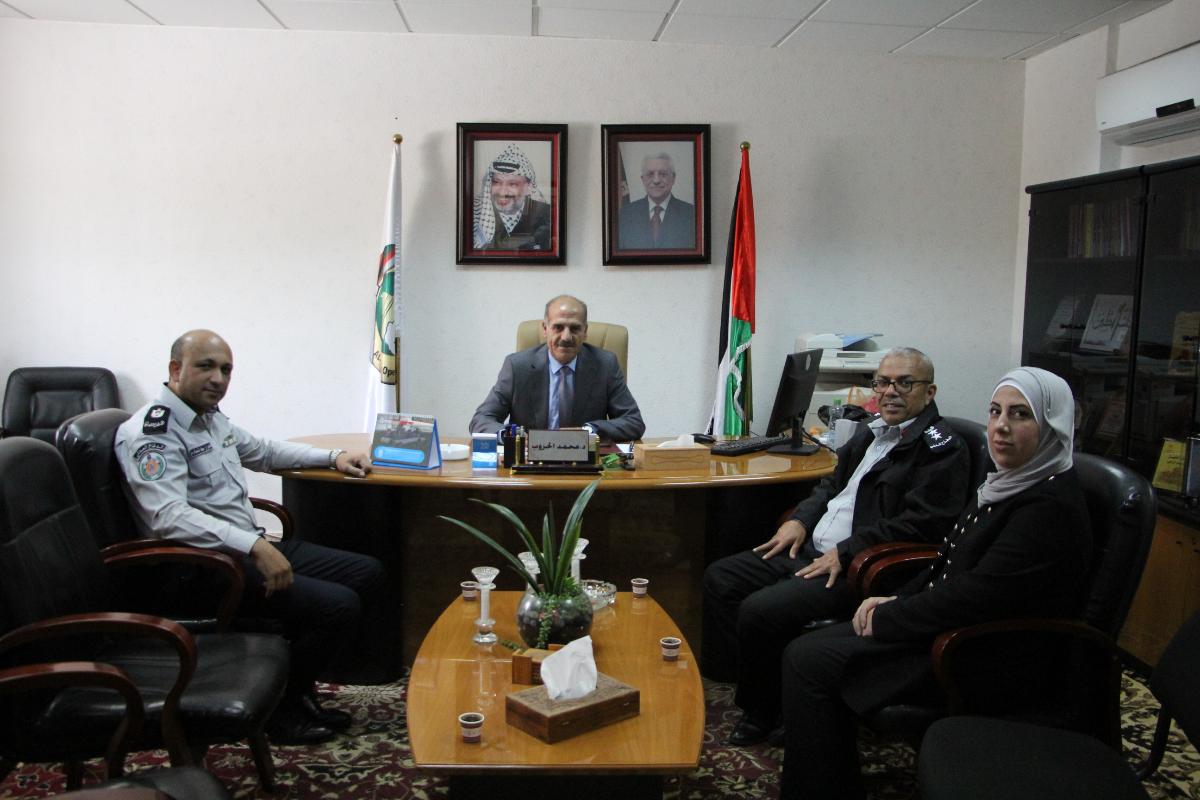 استقبل مدير فرع جامعة القدس المفتوحة في الخليل د. محمد الحروب، وفداً من جهاز الدفاع المدني وجهاز الضابطة الجمركية، ممثلاً بمدير الدفاع المدني العقيد موسى أبو عرقوب، ومدير الضابطة الجمركية المقدم عبد الكريم بسايطة، وبحضور أعضاء من الهيئتين الإدارية والأكاديمية، وذلك لبحث آليات التعاون المشترك.