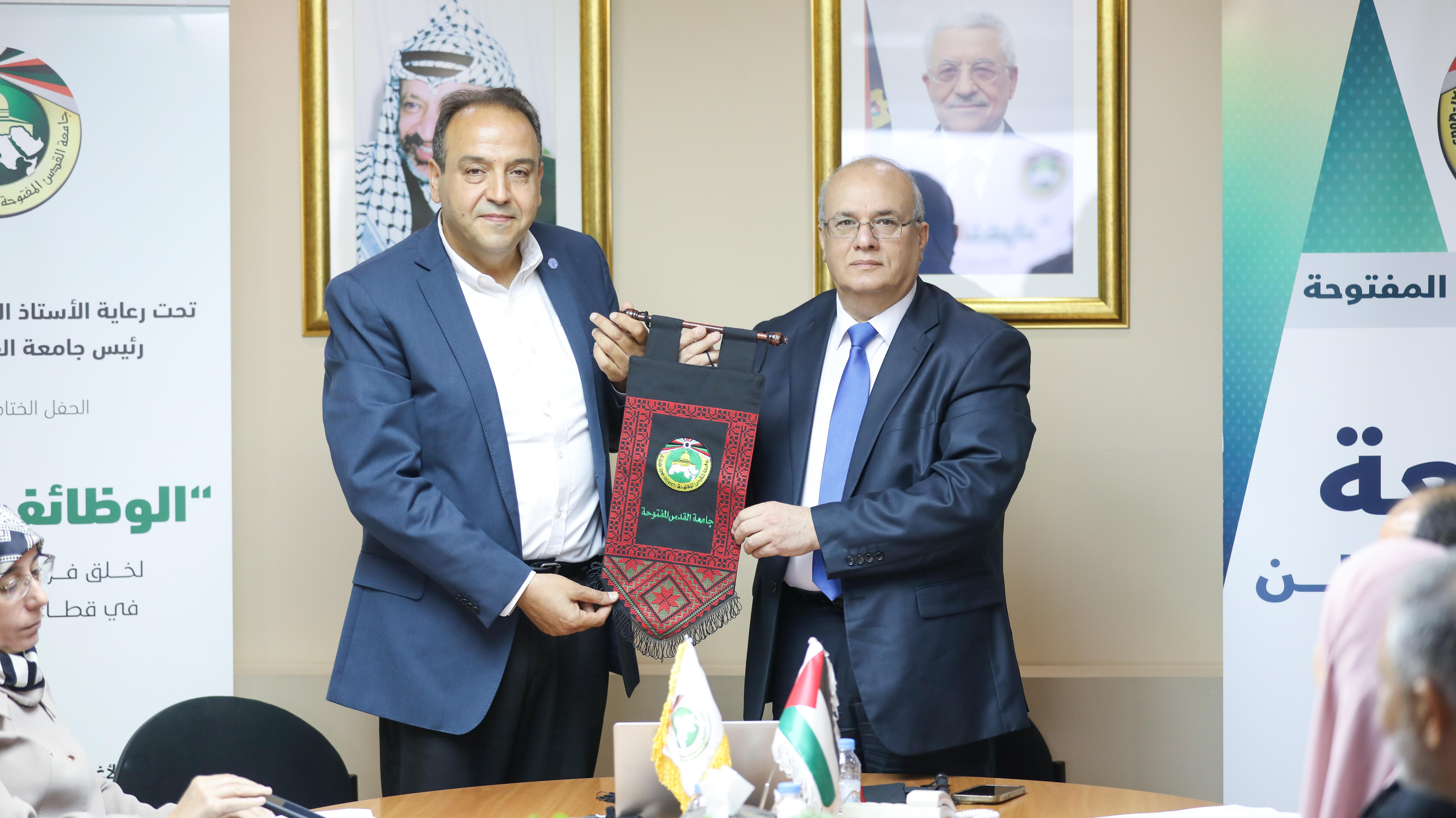 من جانبه، عبّر مدير البرامج في منظمة الأغذية والزراعة للأمم المتحدة "FAO" في فلسطين د. عزام صالح، عن سعادته بزيارته لجامعة القدس المفتوحة، مشيراً إلى أن الجامعة تعد من المؤسسات التعليمية الرائدة في مجال دعم المشاريع الشبابية ذات الأثر التنموي.