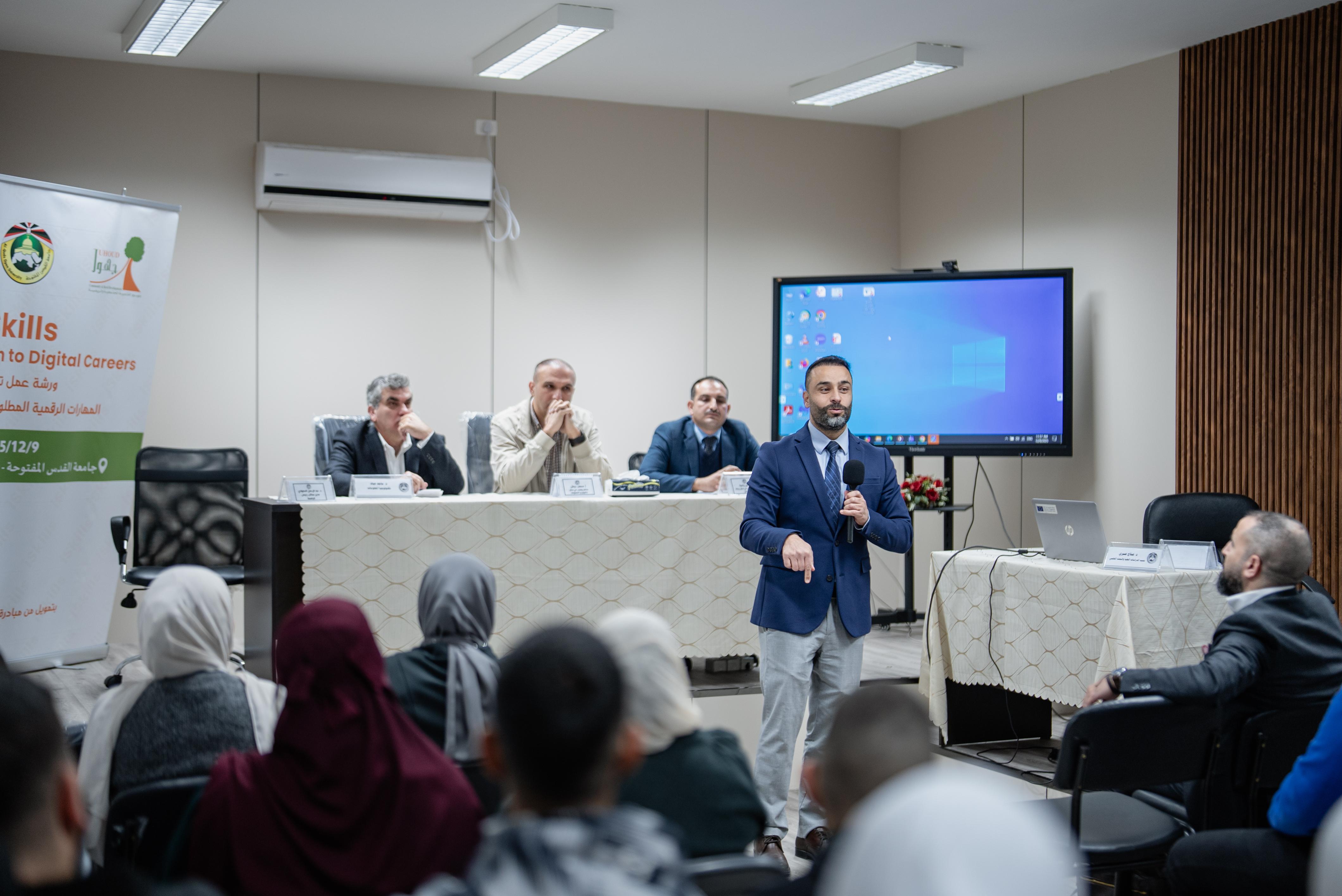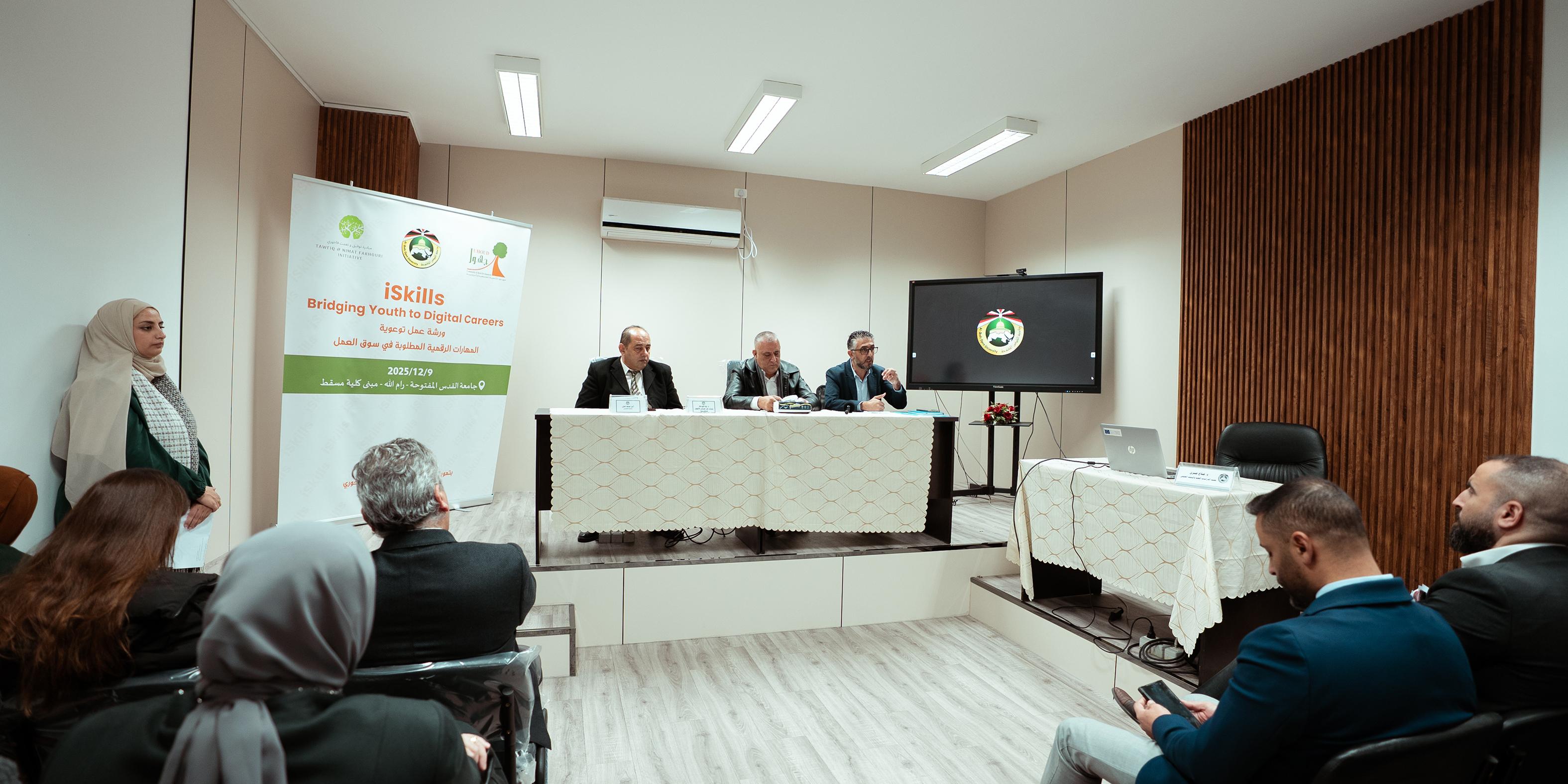 نظّمت جامعة القدس المفتوحة ممثلةً بمركز التعليم المستمر وخدمة المجتمع، وبالتعاون مع جمعية "جهود" للتنمية المجتمعية والريفية، الثلاثاء 9-12-2025 في الحرم الجامعي بمحافظة رام الله والبيرة، ورشة توعوية بعنوان "مهارات التوظيف في سوق العمل الفلسطيني"، وذلك ضمن مشروع "iSkills" المموَّل من "مبادرة توفيق ونعمت فاخوري"، وبمشاركة نخبة من الأكاديميين والخبراء والطلبة والخريجين والباحثين عن عمل.
