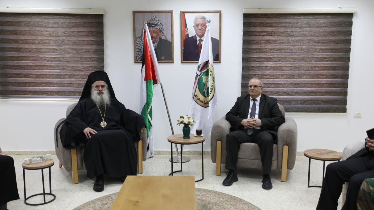 بدوره، ألقى المطران عطا الله حنا كلمة شدد فيها على القيم الروحية والإنسانية للميلاد، وعلى رسالة فلسطين بوصفها أرض السلام، وقال:
