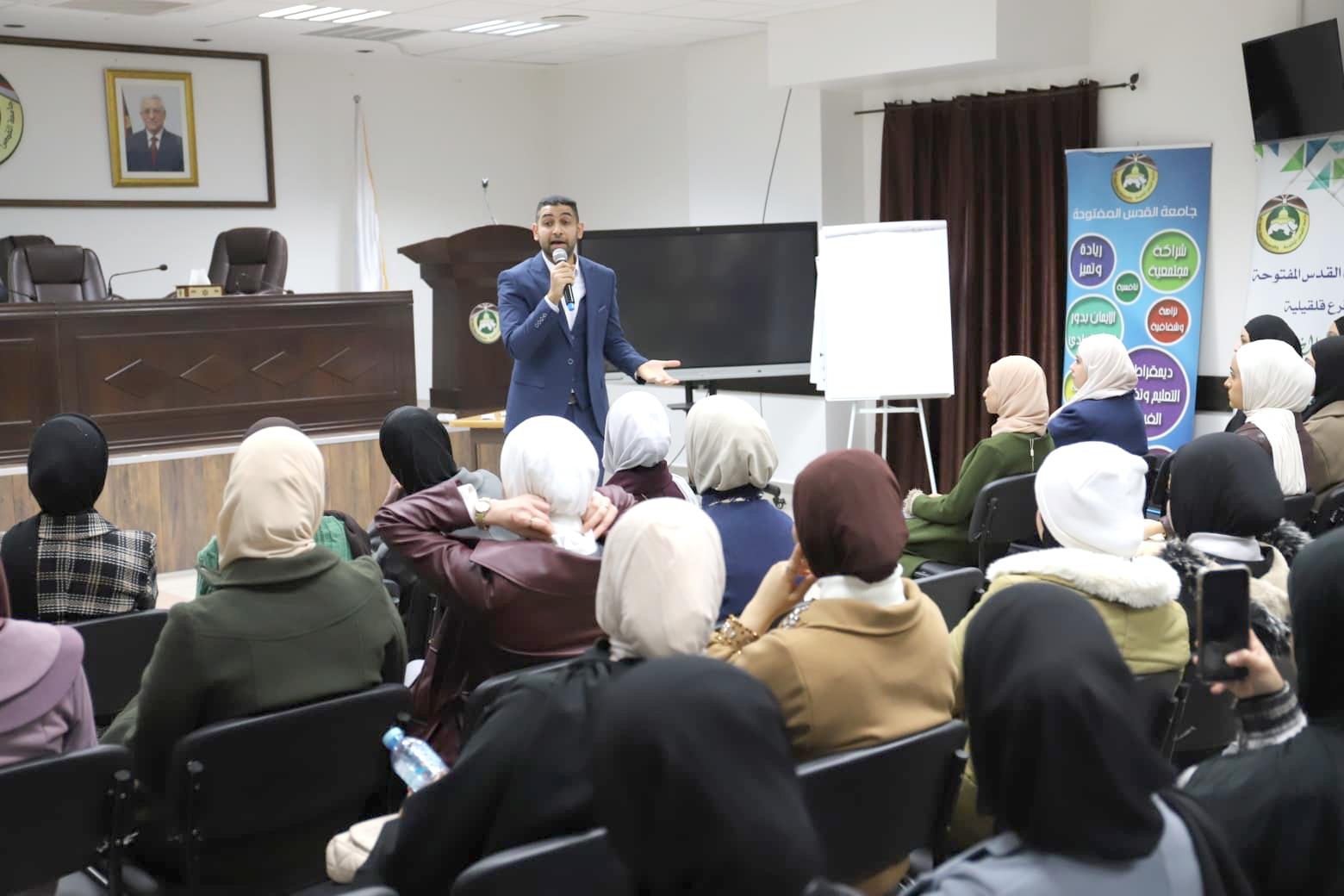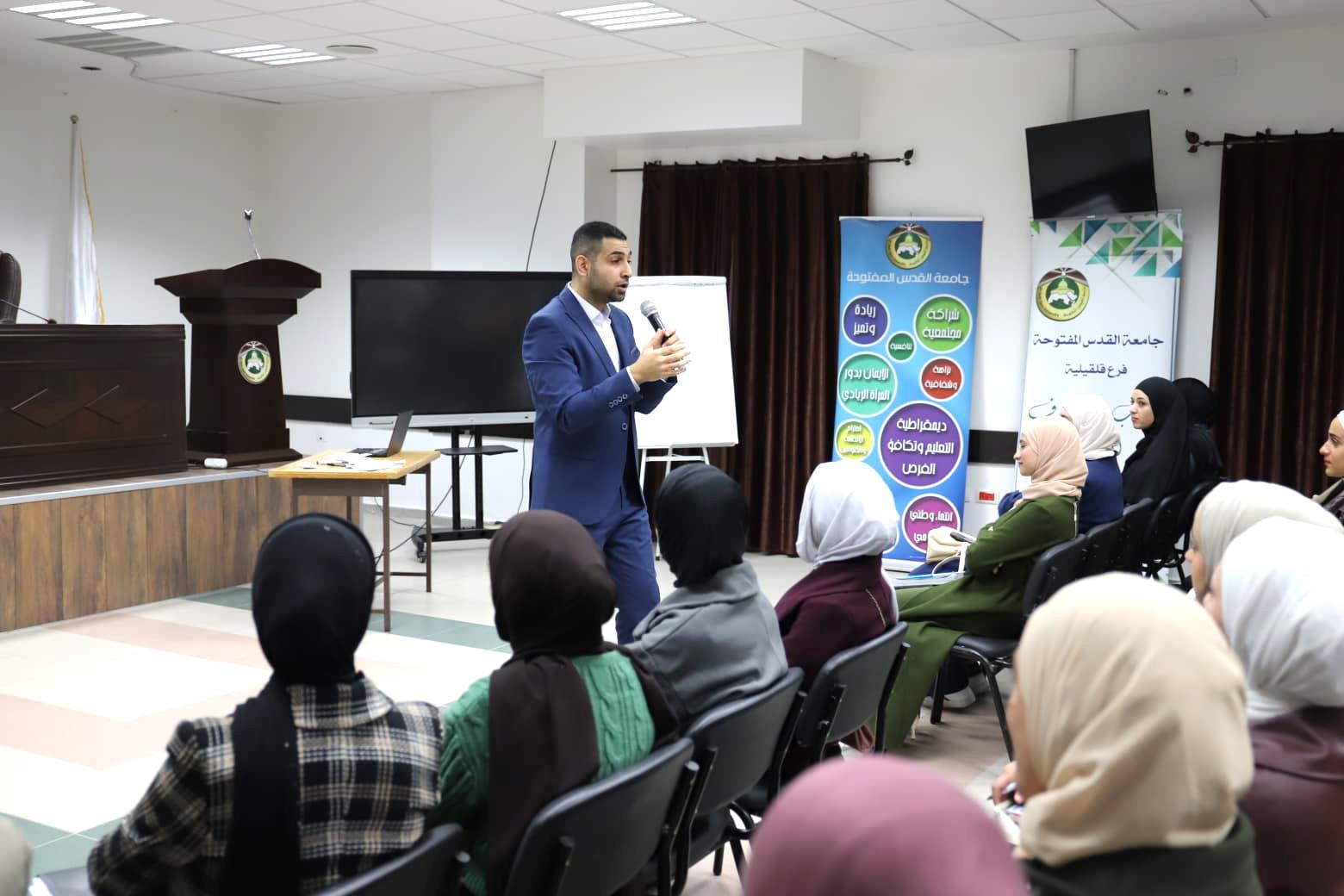 نظّم فرع جامعة القدس المفتحة في قلقيلية، ورشة عمل متخصصة بعنوان "من مقاعد الدراسة إلى سوق العمل: الفرص والتحديات في عالم التسويق الرقمي"، داخل الحرم الجامعي، بمشاركة طلبة تخصص "التسويق الرقمي" من كلية يبوس وطلبة البكالوريوس.وهدفت الورشة إلى تعريف الطلبة بواقع سوق العمل في مجال التسويق الرقمي، وتسليط الضوء على أبرز الفرص المهنية المتاحة، إلى جانب مناقشة التحديات التي قد تواجه الطلبة والخريجين الجدد، وآليات تطوير المهارات المطلوبة لمواكبة متطلبات السوق المتغيرة.