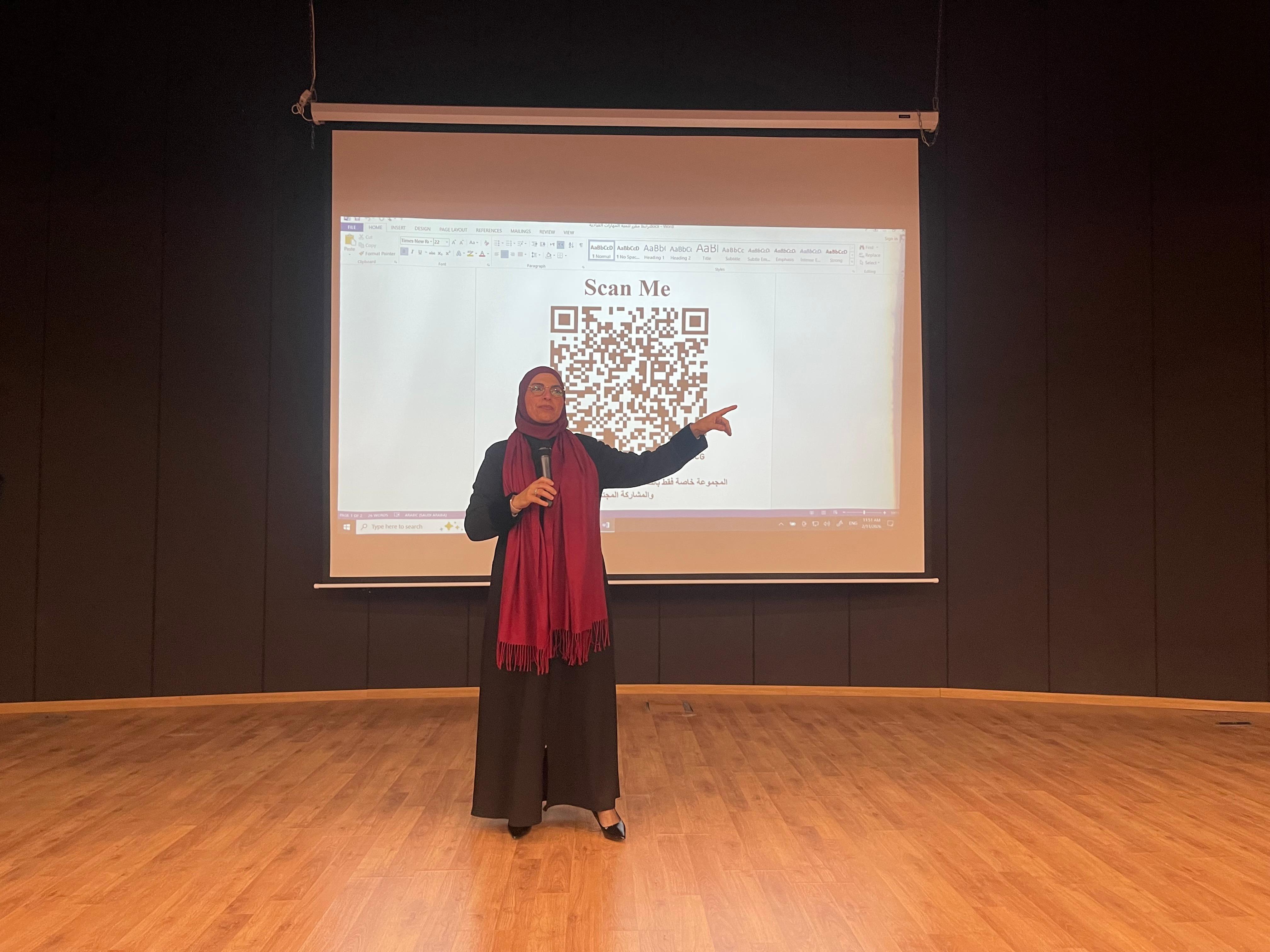 وشرحت أ. مهنا، أهداف المساق ومحاوره، موضحةً أن البرنامج يتضمن تدريباً مكثفاً بواقع (20) ساعة تدريبية لكل طالب، تعقبها (30) ساعة تطبيقاً ميدانياً من خلال تنفيذ مبادرات مجتمعية منظمة، مؤكدة أن "اجتياز المرحلة التدريبية بنجاح يُعد شرطاً أساسياً للانتقال إلى مرحلة تنفيذ المبادرات على أرض الواقع".