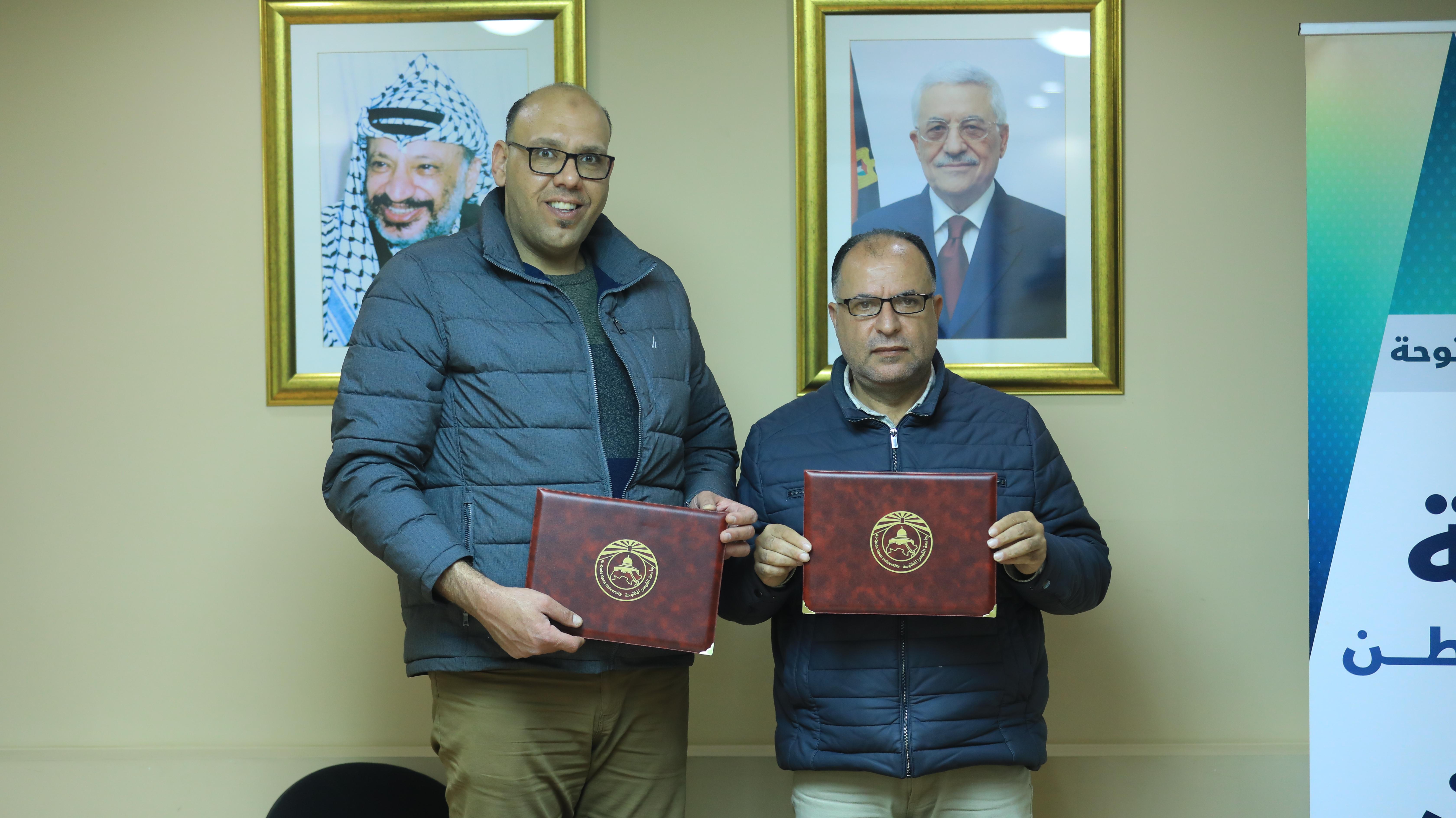 وقّع الاتفاقية عن الجامعة نائب الرئيس للشؤون المالية د. محمد تلالوة، ووقّعها عن النقابة رئيس اللجنة العلمية بالنقابة أ. سعيد بشير، وذلك في مقر رئاسة الجامعة بمحافظة رام الله والبيرة، بحضور عدد من ممثلي الجانبين.