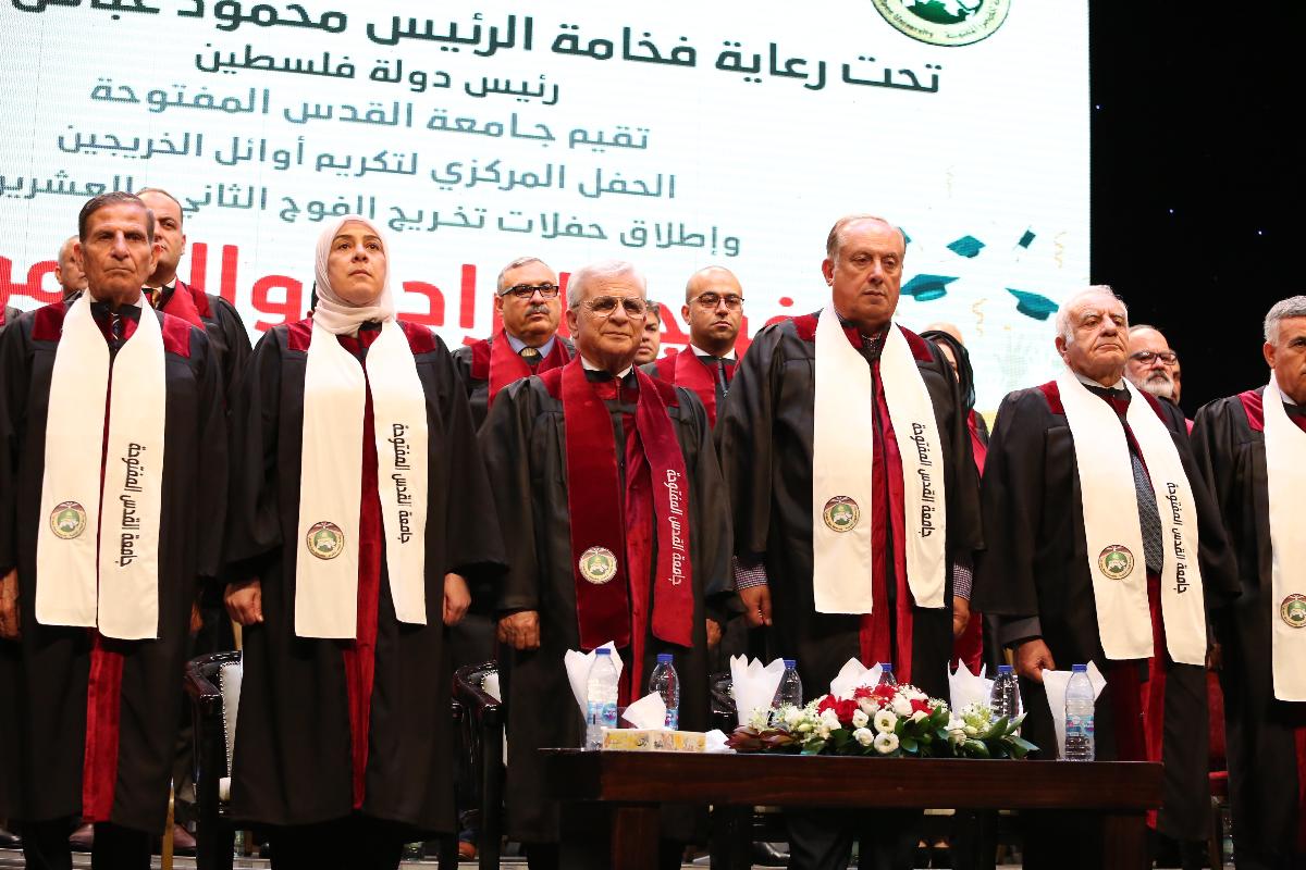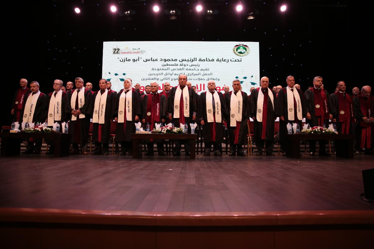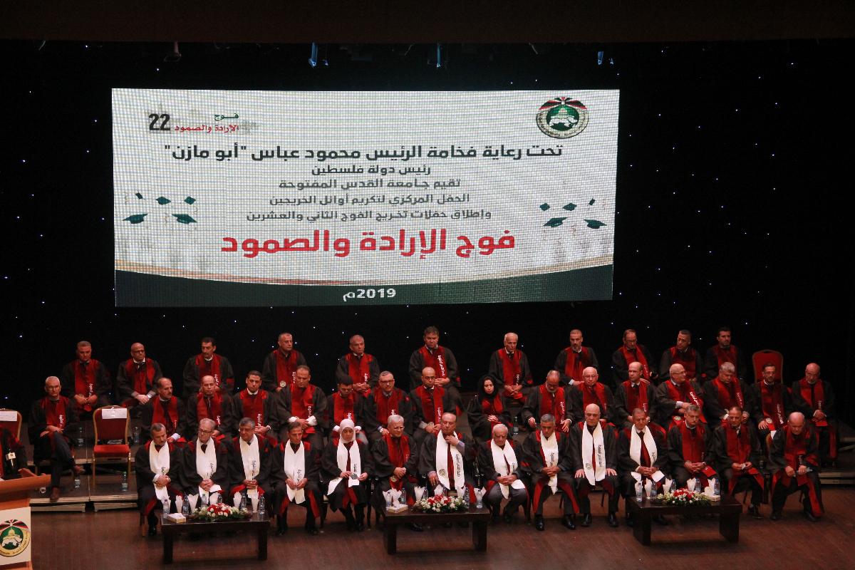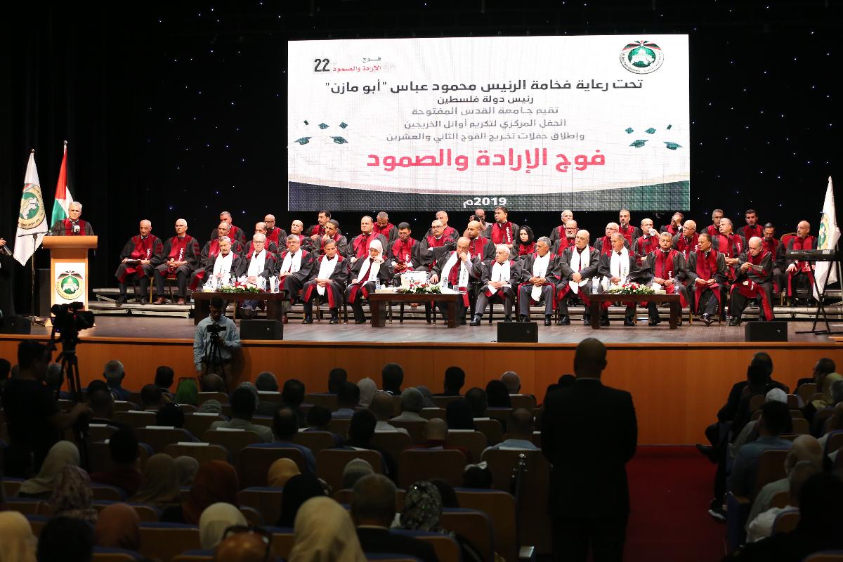 برعاية فخامة رئيس دولة فلسطين محمود عباس "أبو مازن"، أطلقت جامعة القدس المفتوحة حفلات تخريج الفوج الثاني والعشرين (فوج الإرادة والصمود)، بتكريم الطلبة المتفوقين من أوائل التخصصات في مختلف فروع الجامعة، وذلك في قاعة الهلال الأحمر الفلسطيني بمدينة البيرة، يوم الأربعاء الموافق 17/7/2019م.