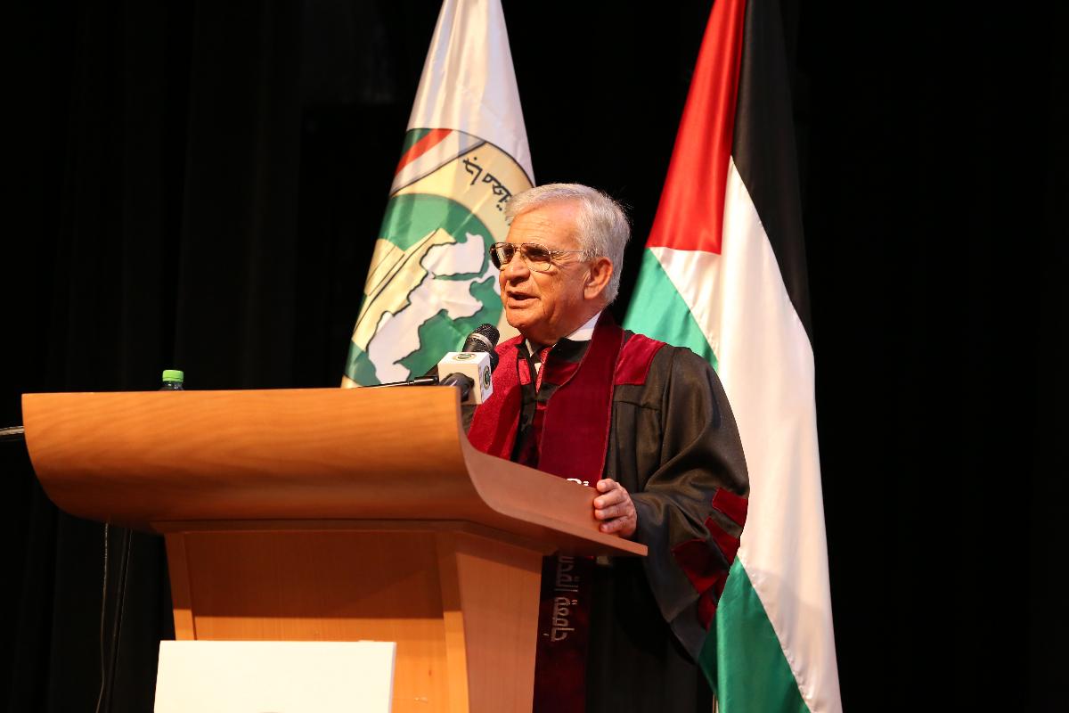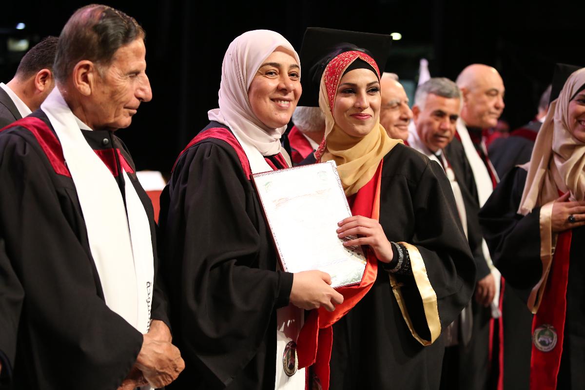 وكان الاحتفال الذي تولى عرافته أ. د. محمد شاهين مساعد رئيس الجامعة لشؤون الطلبة افتتح بتلاوة آيات عطرة من القرآن الكريم وعزف النشيد الوطني الفلسطيني.