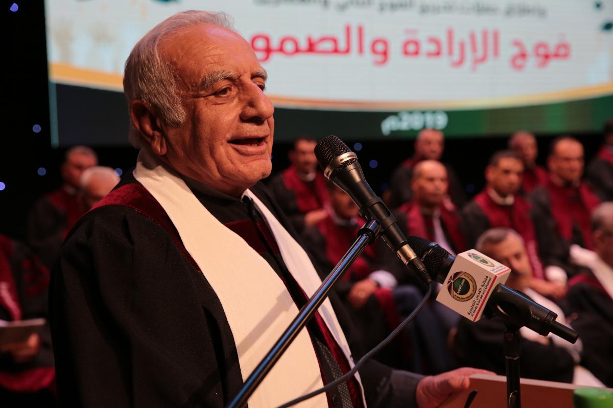 ونقل وزير التعليم العالي والبحث العلمي أ. د. محمود أبو مويس، في كلمته نيابة عن الرئيس محمود عباس، تحيات فخامة الرئيس للحضور مهنئاً الخريجين وأهاليهم، مؤكداً أن الجامعات وشبابها والأبحاث العلمية وروادها هم عماد الدولة وأحد أهم أركانها.