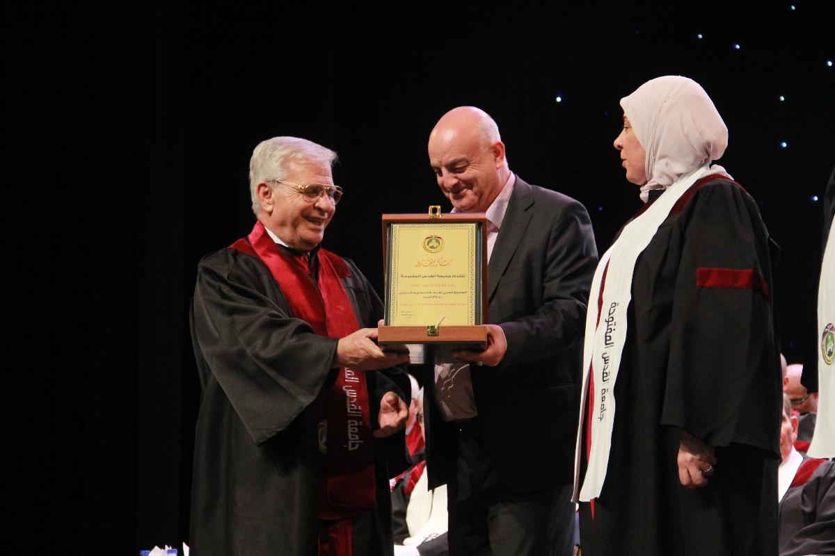 تخلل الاحتفال تكريم المؤسسات الداعمة للجامعة وهي: مجلس الوزراء الفلسطيني من خلال وزارة التعليم العالي والبحث العلمي، ومجموعة الاتصالات الفلسطينية، ومؤسسة التعاون، واللجنة القطرية الدائمة لدعم القدس، والمجلس الاقتصادي الفلسطيني للتنمية والإعمار "بكدار"، والجمعية الخيرية المتحدة للأراضي المقدسة، والصندوق العربي للإنماء الاقتصادي والاجتماعي/ دولة الكويت.