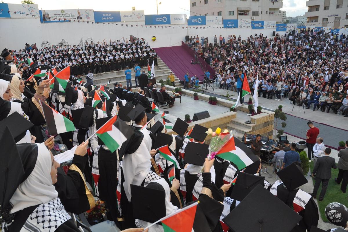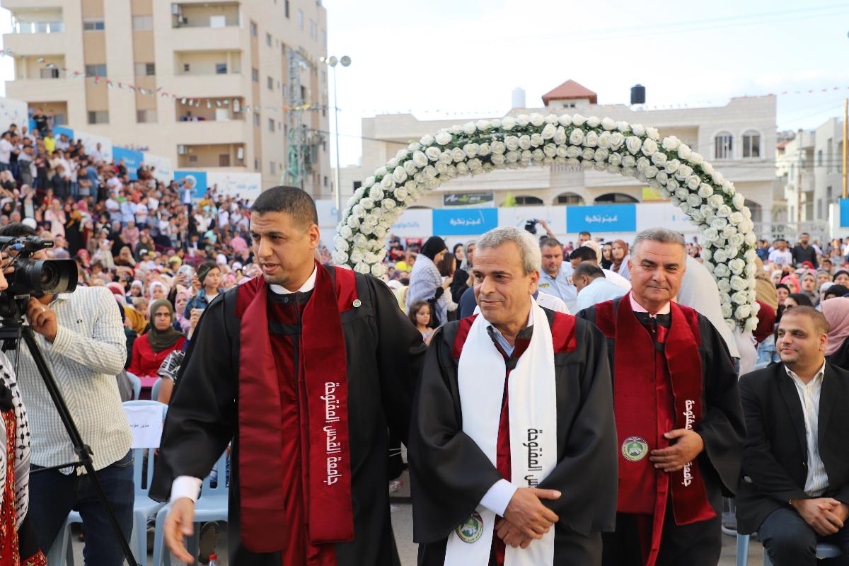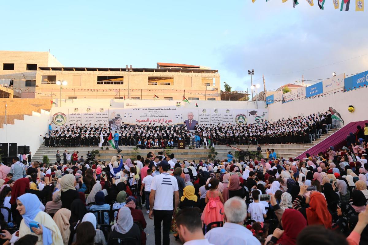 وأكد رواجبه أن تمسك القيادة الفلسطينية بموقفها المشرف بالرفض القاطع للمساس بمخصصات من هم أكرم منا جميعاً إلا خير دليل على صلابة موقفنا ورفضنا لتلك الصفقة المشبوهة ومخرجاتها، مؤكدين أن الوحدة الوطنية هي صمام الأمان أـمام ضد مؤامرات الاحتلال، محذرين من بعض الأنظمة والوقوف موقف الصامت تجاه ما تقوم به أمريكا وإسرائيل من محاولات لتصفية القضية الفلسطينية، داعياً الخريجين أن يجعلوا من العلم سلاحاً مصوباً نحو البناء والتطوير.