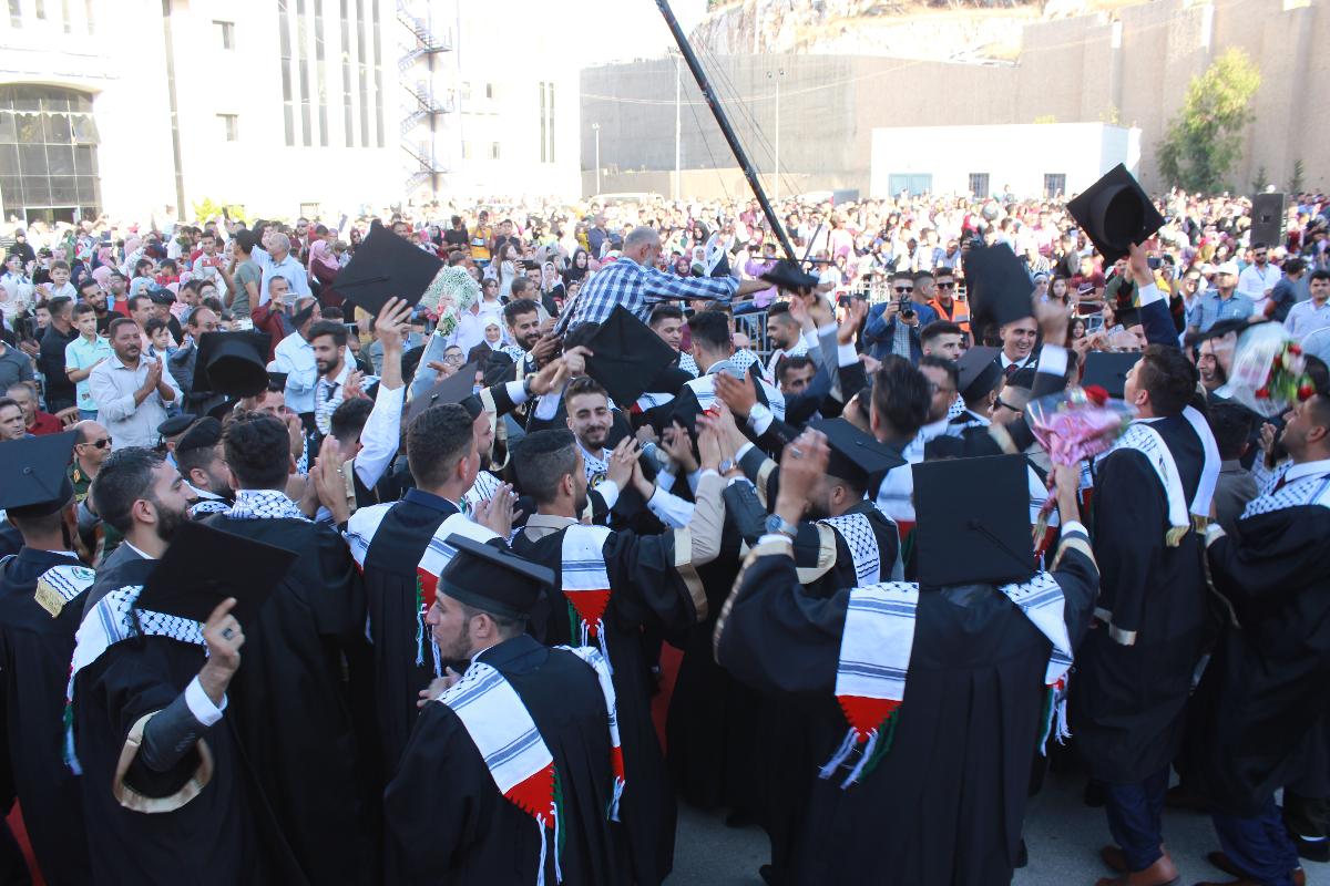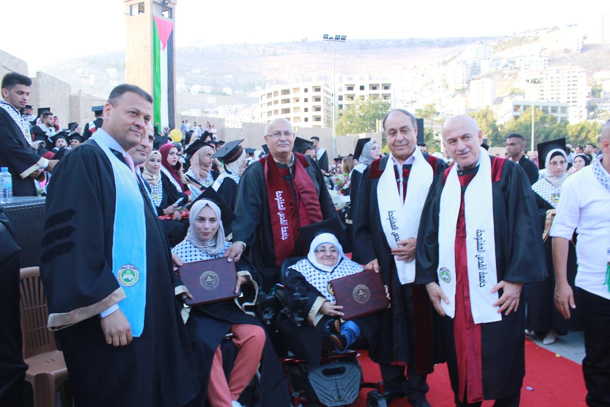 وفي كلمة الخريجين التي ألقتها الطالبة دعاء مصباح محمد، الأولى في فرع نابلس- تخصص تكنولوجيا المعلومات والاتصالات بمعدل 95.81، فقد شكرت إدارة الجامعة وكافة الطواقم فيها، وأثنت على المؤسس الأول للجامعة الراحل القائد أبو عمار، ووجهت تحية خاصة للأمهات والآباء وأهدت لهم هذا التخرج.