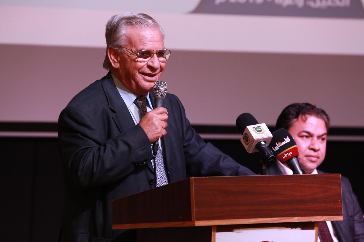 من جانبه، ألقى أ. أحمد بيوض التميمي كلمة ثمن فيها عقد هذا المؤتمر في مدينة الخليل، الذي يختص في موضوع اللاجئين، مؤكداً على الموقف الفلسطيني الثابت والصلب تجاه قضية اللاجئين الفلسطينيين والقضايا الوطنية والتمسك بالثوابت الوطنية الفلسطينية ورفض صفقة القرن وكل ما ينتج عنها.