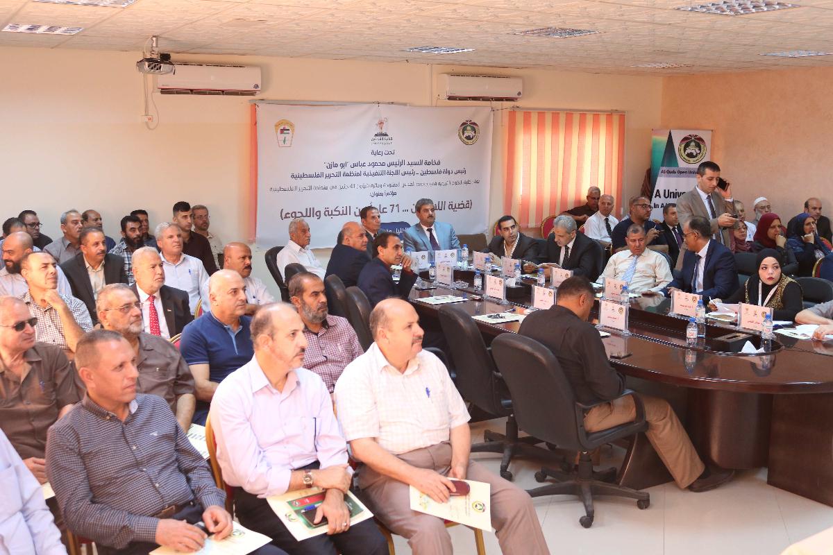 عقدت كلية العلوم التربوية في جامعة القدس المفتوحة، ودائرة شؤون اللاجئين في منظمة التحرير الفلسطينية، تحت رعاية فخامة الرئيس محمود عباس "أبو مازن" رئيس دولة فلسطين ورئيس اللجنة التنفيذية لمنظمة التحرير الفلسطينية، مؤتمراً بعنوان: "قضية اللاجئين ... 71 عاماً من النكبة واللجوء".