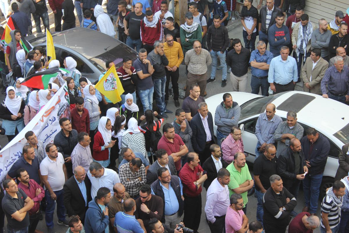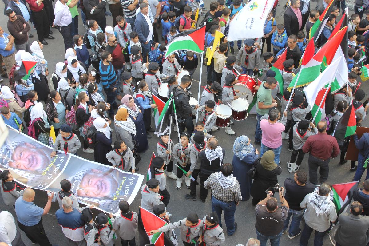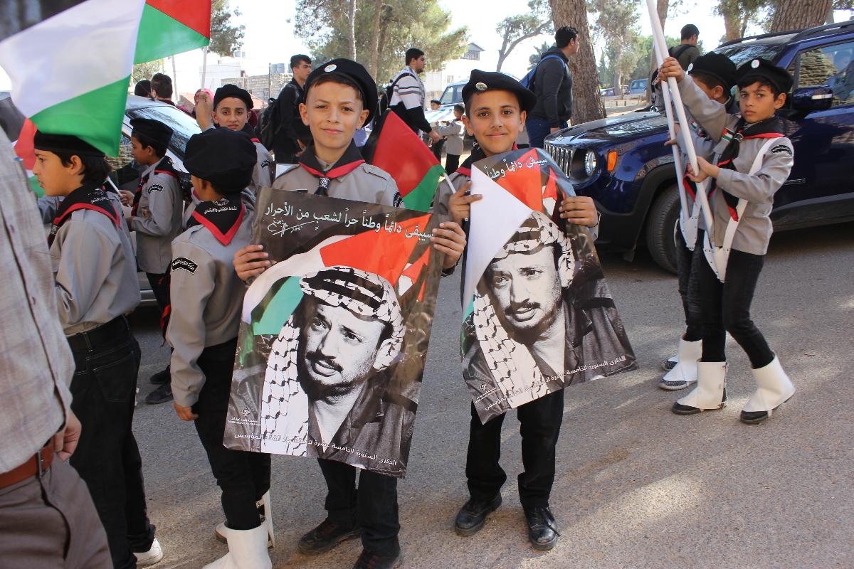 وانطلقت المسيرة من مدرسة الرازي وصولاً إلى وسط البلد، ليتخللها العديد من الكلمات التي أكد ملقوها أن الشعب الفلسطيني ما زال متمسكاً بالثوابت الفلسطينية سائراً على درب الياسر، ومترحمين عليه وعلى كل الشهداء، وسائلين المولى عز وجل الإفراج القريب والعاجل عن كل الأسرى في سجون الاحتلال.