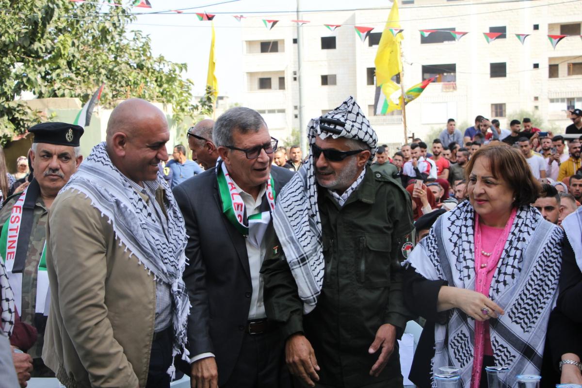 بدوره، نقل محافظ محافظة جنين اللواء الرجوب تحيات الرئيس محمود عباس (أبو مازن)، حامل رسالة الشهيد (أبو عمار) ورؤيته، بالوقوف ضد الافتراءات، وضد كل من تكالب على القضية الفلسطينية، وهو الثابت على الثواب.