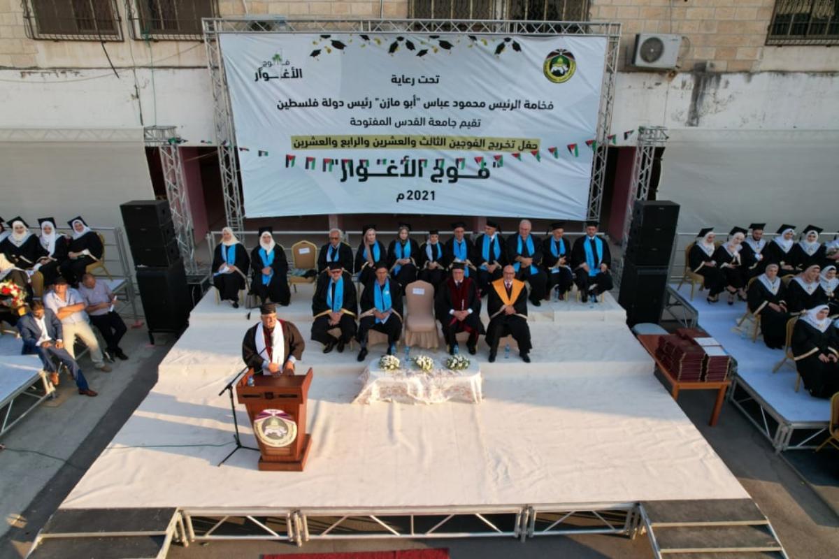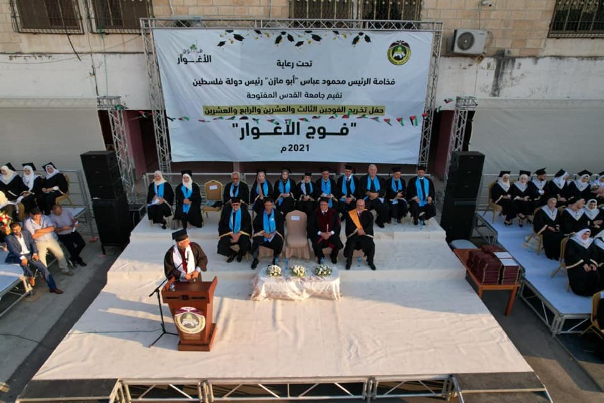 تحت رعاية فخامة رئيس دولة فلسطين السيد محمود عباس "أبو مازن"، أقيم في محافظة القدس، يوم الأحد الموافق 8-8-2021م، حفل تخريج الفوجين الثالث والعشرين والرابع والعشرين (فوج الأغوار)، بحضور ممثلي المؤسسات المحلية والأمنية والمجتمعية في المحافظة، وأهالي الخريجين. وبدأ الاحتفال بآيات عطرة من القرآن الكريم تلاها الطالب محمود ابو خروب، والوقوف تحية للسلام الوطني، ونشيد الجامعة فقراءة الفاتحة على أرواح الشهداء.