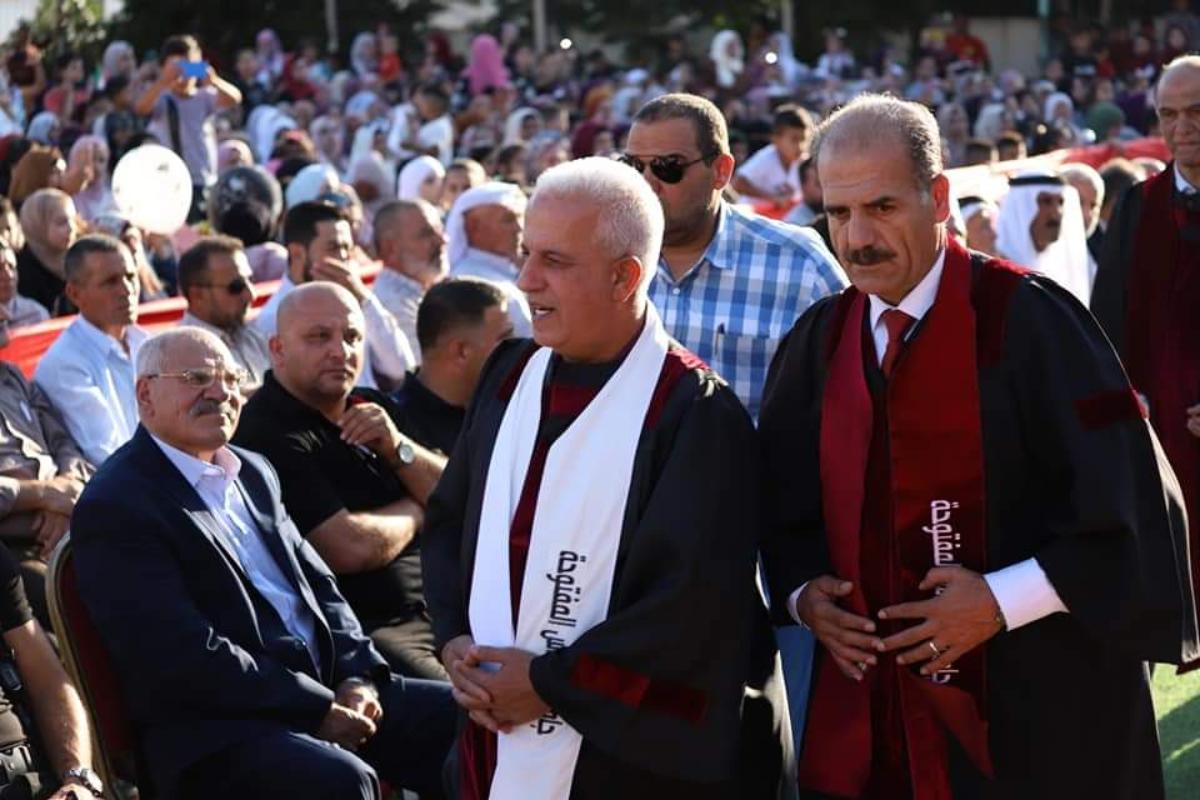 وحضر الاحتفال الذي أقيم في مدرسة ذكور الأنصار الإسلامية، عطوفة محافظ محافظة الخليل اللواء جبرين البكري، ممثلاً عن فخامة الرئيس، ومدير فرع يطا د. محمد الحروب ممثلاً عن رئيس الجامعة أ. د. يونس عمرو، ومدير فرع الخليل أ. د. تيسير أبو ساكور، ومدير فرع دورا أ. د. نعمان عمرو، وممثلو المؤسسات الرسمية والأمنية والمجتمع المحلي، وأمين سر إقليم يطا وضواحيها أ. نبيل أبو فبيطة، ورئيس بلدية يطا أ. د. عيسى سميرات، ورئيس بلدية الكرمل أ. محمد سليمان دبابسة، والعديد من رؤساء المجالس القروية في يطا ومحيطها من المسافر والبادية، بالإضافة إلى العديد من الشخصيات الاعتبارية ووجهاء العشائر والأسرى المحررين.