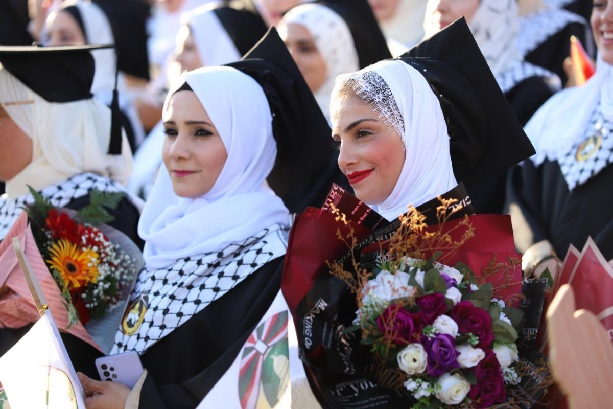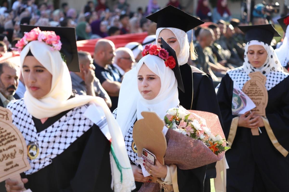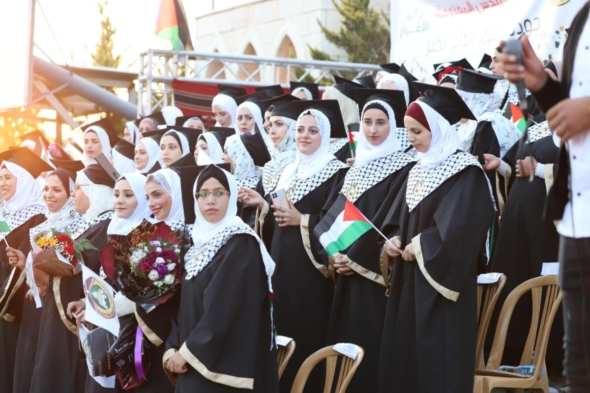 وبينت عضو مجلس الطلبة وإحدى خريجات برنامج الماجستير، الطالبة إيمان أبو عرام، أهمية مشاركة الخريجين فرحتهم، على الرغم من منغصات الاحتلال الذي يضرب بعرض الحائط كل الأنظمة والقوانين الدولية، مبينة دور الشبيبة الطلابية ومجلس الطلبة في تعزيز الهوية الفلسطينية والثقافة الوطنية للطلبة، وتعزيز صمود المواطنين على أرضهم في وجه اعتداءات الاحتلال ومستوطنيه، مشيدة بالجامعة وبجهود رئيسها أ. د. يونس عمرو، مؤكدة الموقف الطلابي في الحفاظ على الجامعة ومنجزاتها كونهم الدرع الحامي لها.
