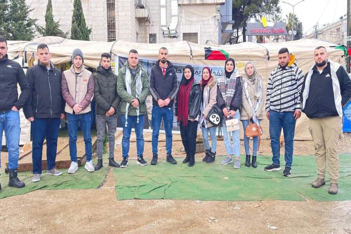 وفي نهاية الوقفة، تم التوجه إلى خيمة الاعتصام والتضامن مع الأسير البطل ناصر أبو حميد في مخيم الأمعري.