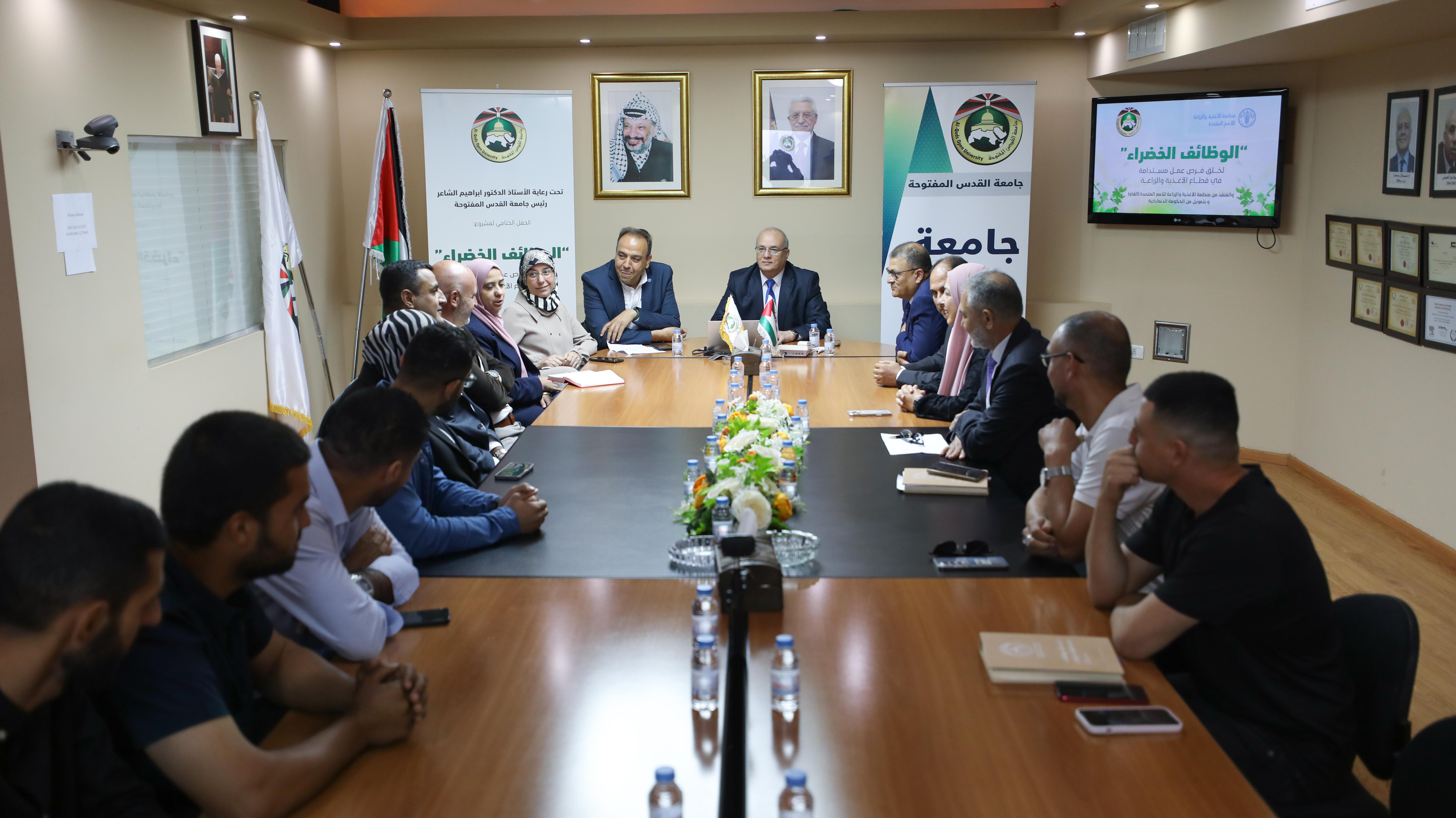 ورحّب أ. د. الشاعر بالحضور، معرباً عن اعتزازه وفخره بالعلاقة المتينة التي تجمع "القدس المفتوحة" بمنظمة "الفاو"، وبالشراكة التي تبنى على القيم والرسالة والرؤى لتحقيق الاستدامة، مؤكداً أن هذه الشراكة تأتي في إطار رؤية الجامعة الرامية إلى تعزيز التنمية المستدامة ودعم الاقتصاد الأخضر في فلسطين، مضيفاً: "إن الجامعة تهدف إلى تخريج شباب ريادي لا يبحث عن الوظيفة فقط، إنما يصنعها بيده".