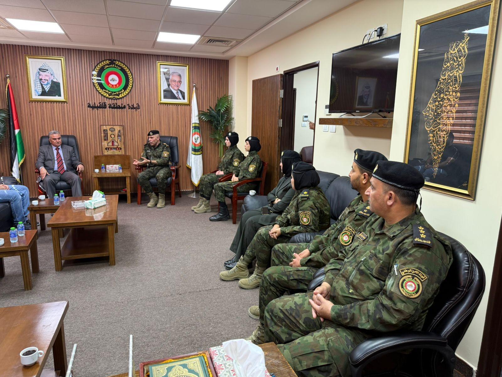 زار وفد من فرع جامعة القدس المفتوحة في قلقيلية، ممثلاً بمدير الفرع أ. د. عطية مصلح وعدد من أعضاء الهيئة الإدارية، قيادة منطقة قلقيلية، حيث كان في استقبالهم قائد المنطقة العقيد جمال مصاروة وعدد من الضباط.
