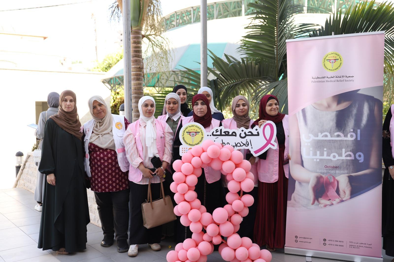 وقدمت مسؤولة التثقيف الصحي بجمعية الإغاثة الطبية الفلسطينية أ. إيمان جبر، فقرة تفاعلية شملت أسئلة ومسابقات حول موضوع التوعية بسرطان الثدي.