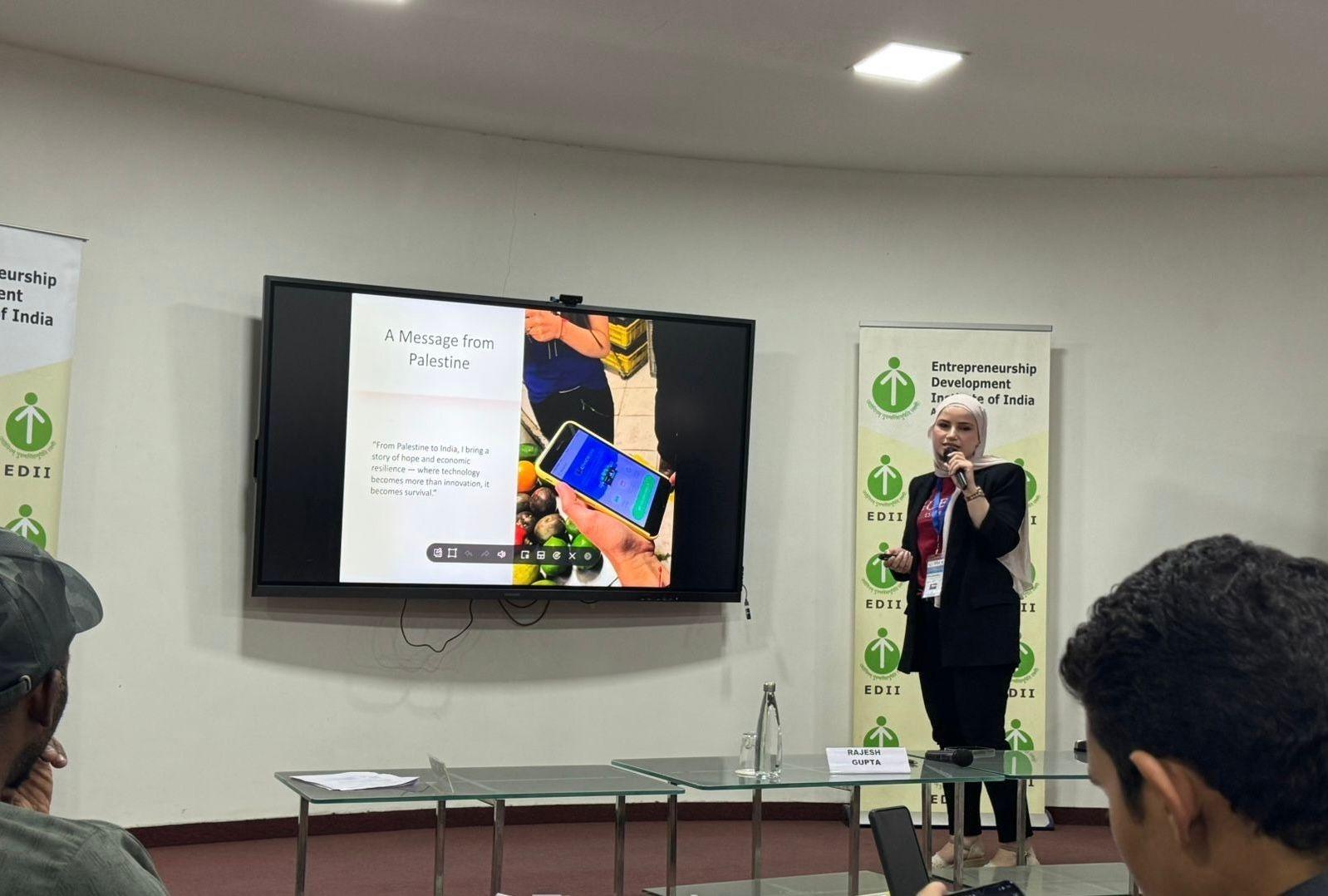 وقدّمت أ. حمدان خلال البرنامج عرضًا حول واقع ريادة الأعمال والتحول الرقمي في فلسطين، مما أسهم في تعزيز الحضور الفلسطيني في هذا المحفل الدولي.