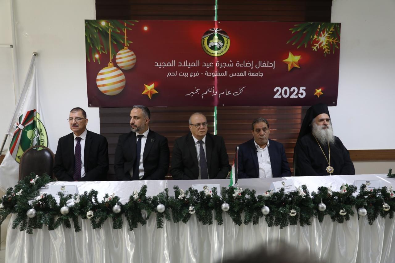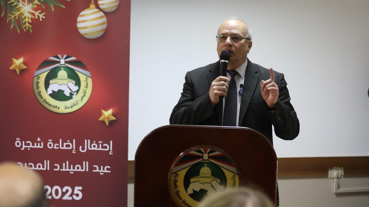 وأضاف أن إضاءة شجرة الميلاد في حرم جامعة القدس المفتوحة تأكيد على أن مؤسساتنا التعليمية شريك أصيل في حماية الهوية، وبناء الإنسان، وتعزيز النسيج الوطني الواحد.