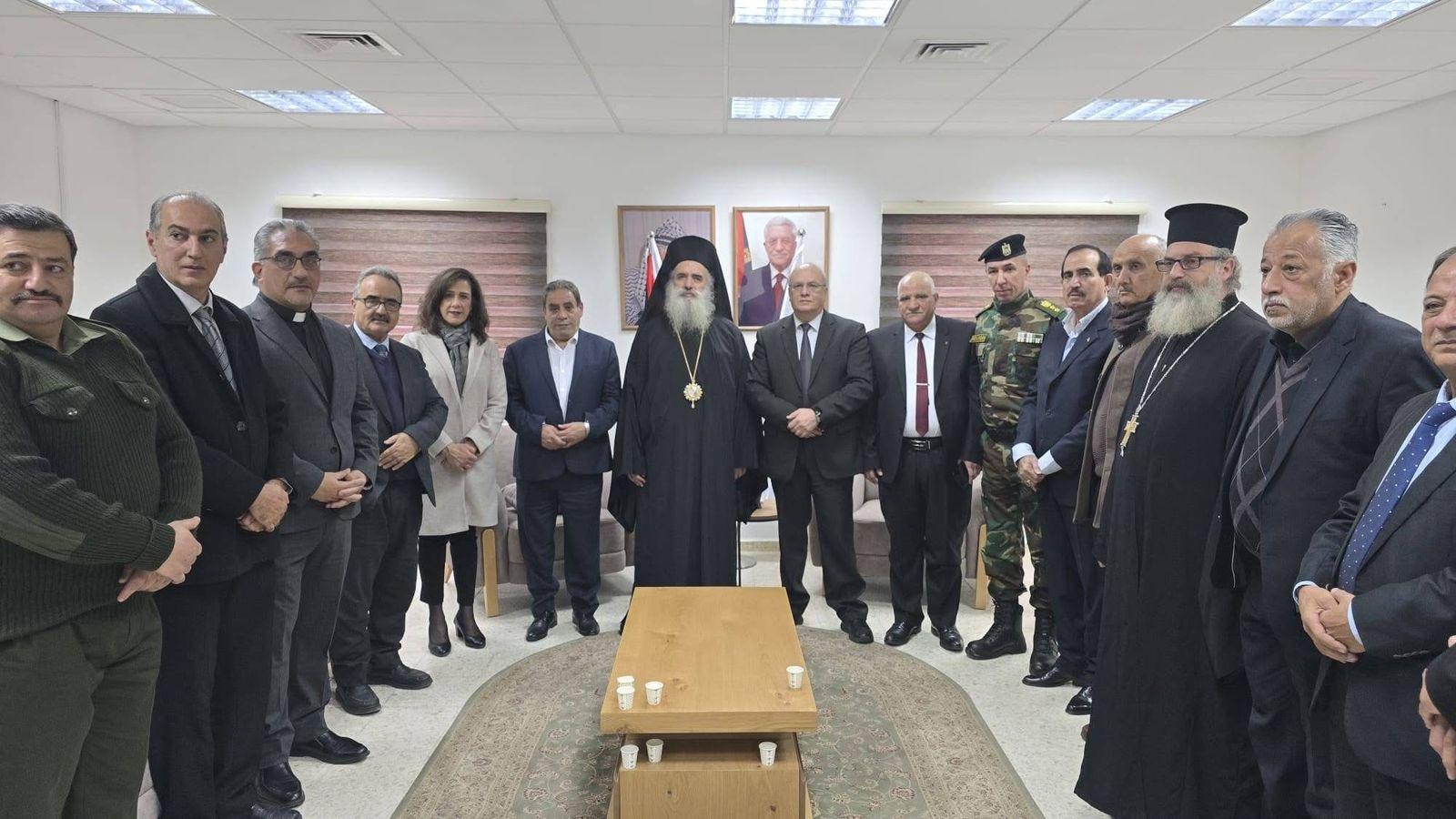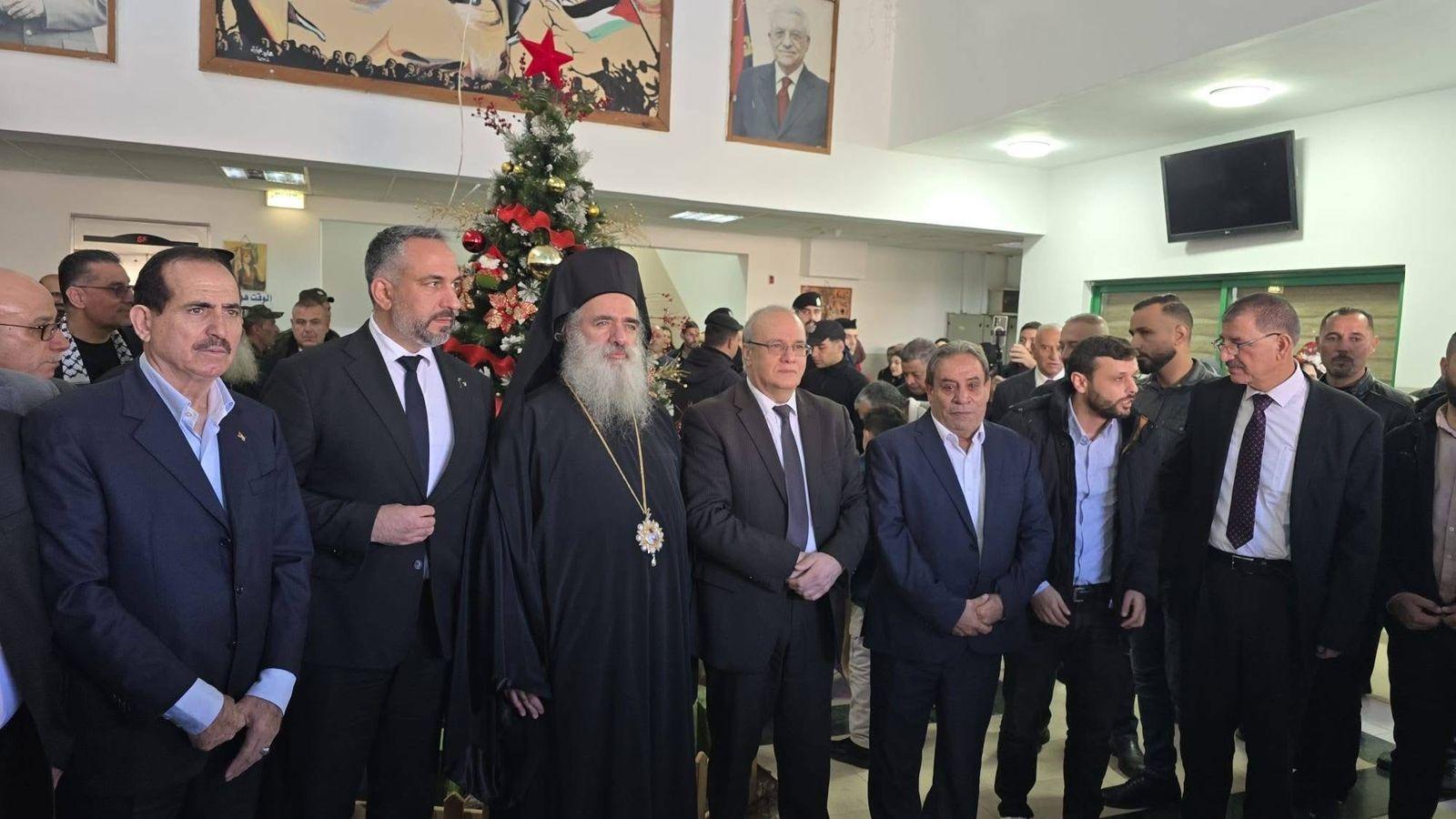 بدوره، ألقى المطران عطا الله حنا كلمة شدد فيها على القيم الروحية والإنسانية للميلاد، وعلى رسالة فلسطين بوصفها أرض السلام، وقال: