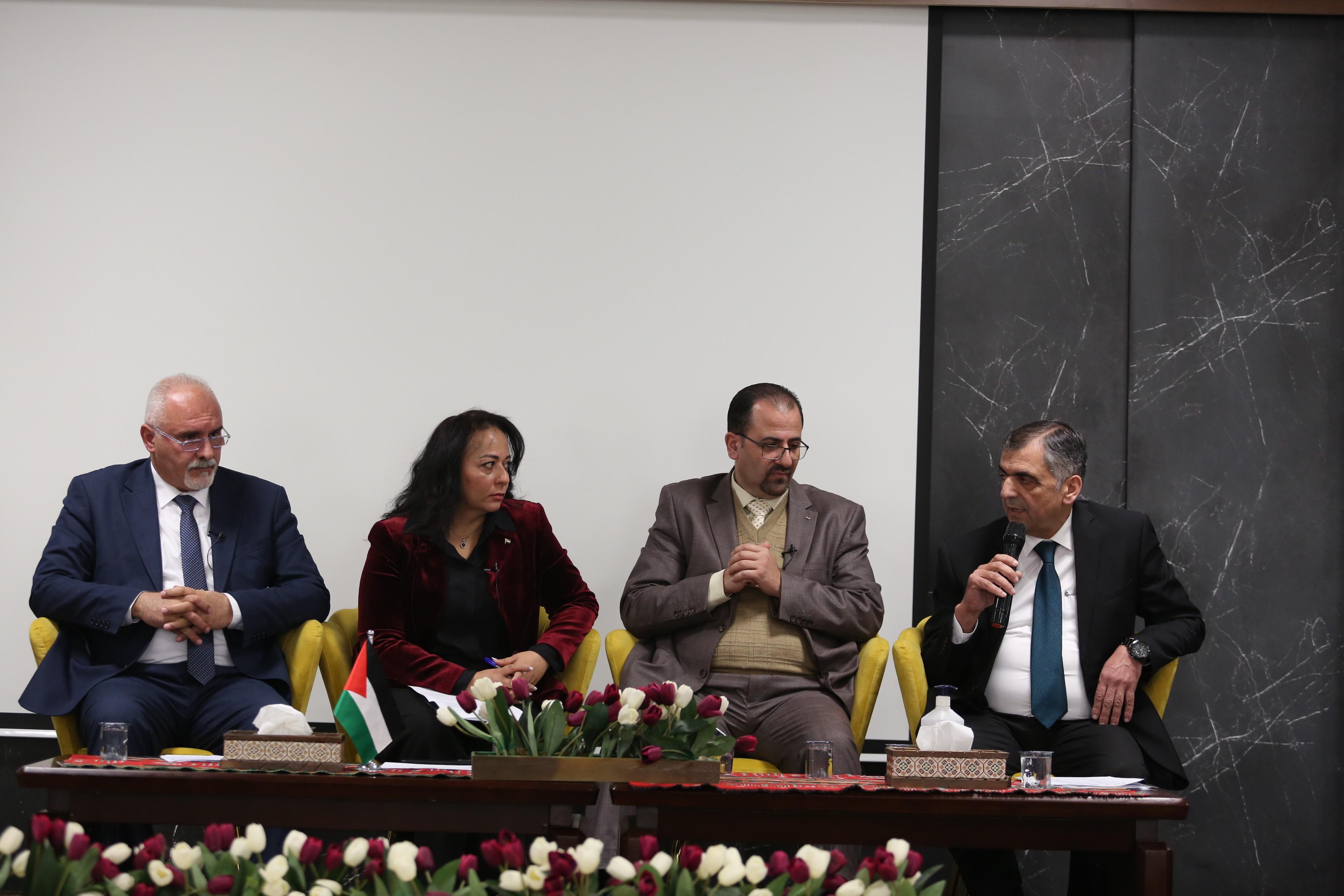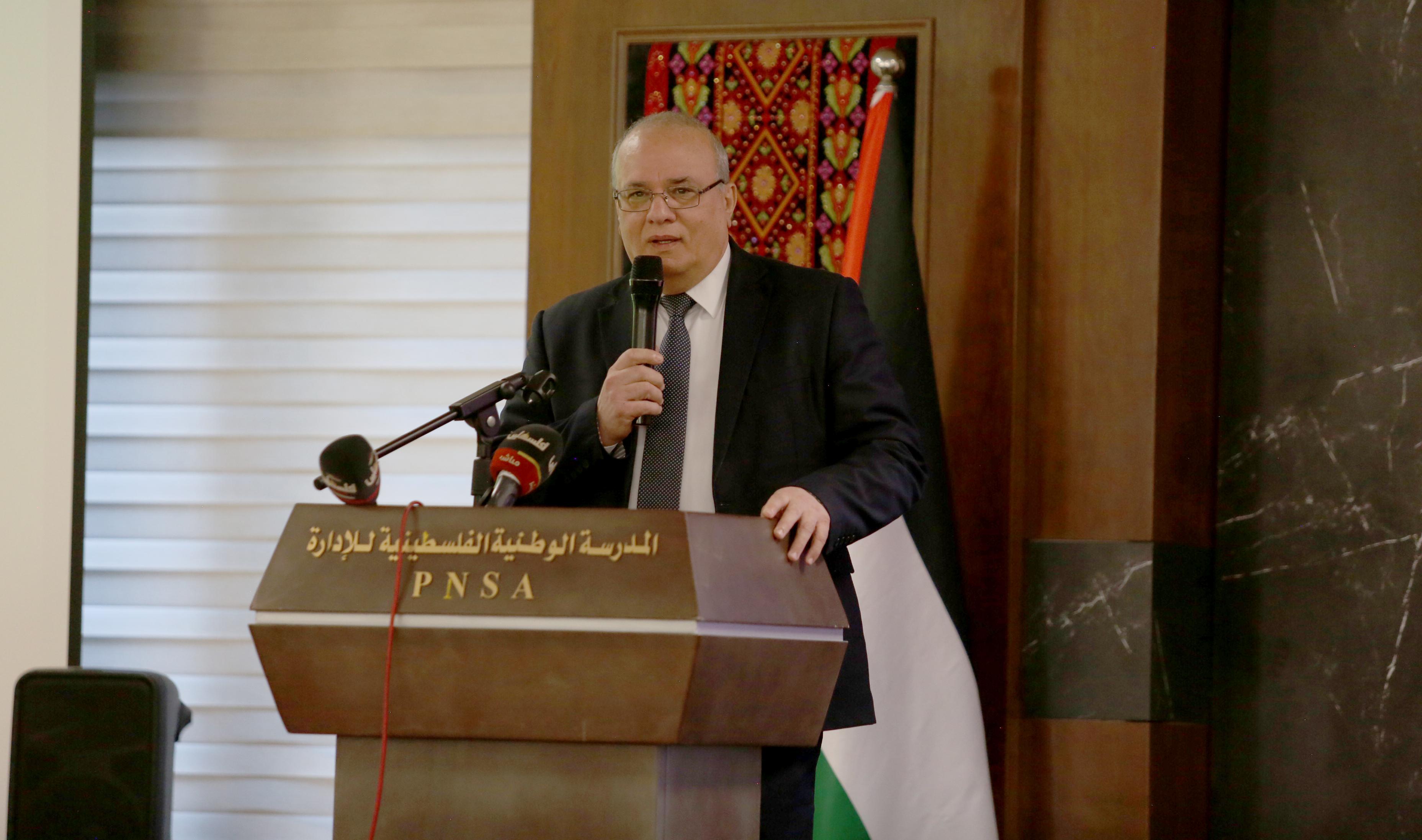 وأضاف أن البعد الثاني للندوة يتمثل في ترسيخ مبدأ الشراكة الفاعلة بين الجامعة، بصفتها مؤسسة أكاديمية منتِجة للمعرفة، وكلٍّ من المدرسة الوطنية والوزارة والمعهد الوطني للأمن، بما يعكس تكامل الأدوار بين البحث العلمي وصنع السياسات والتنفيذ المؤسسي، ويسهم في توحيد الجهود الوطنية لمواجهة التحديات وتعزيز صمود الشعب الفلسطيني، مؤكدًا حرص الجامعة على توظيف المعرفة العلمية لخدمة قضايا التنمية الوطنية.