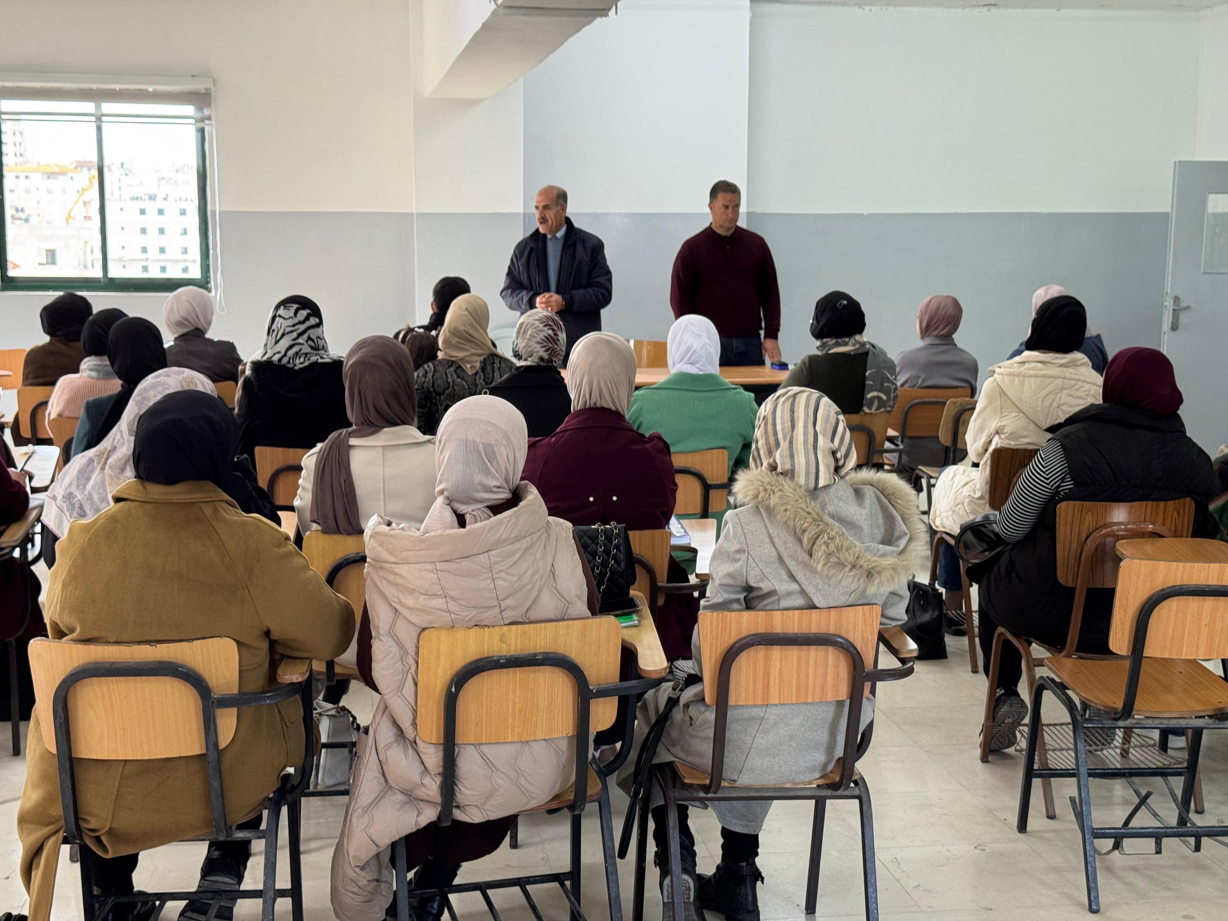 ومن جهة أخرى، قدّم عضوا هيئة التدريس في الكلية د. شادي عواد وأ. مريم مسودة، شرحًا مفصّلًا حول مقرر التربية العملية، تطرّقا فيه إلى جميع ما يتعلق بالمقرر من تعليمات وتوجيهات وإرشادات، إضافة إلى توضيح آلية التقييم ومتطلبات التدريب، والإجابة عن استفسارات الطلبة.