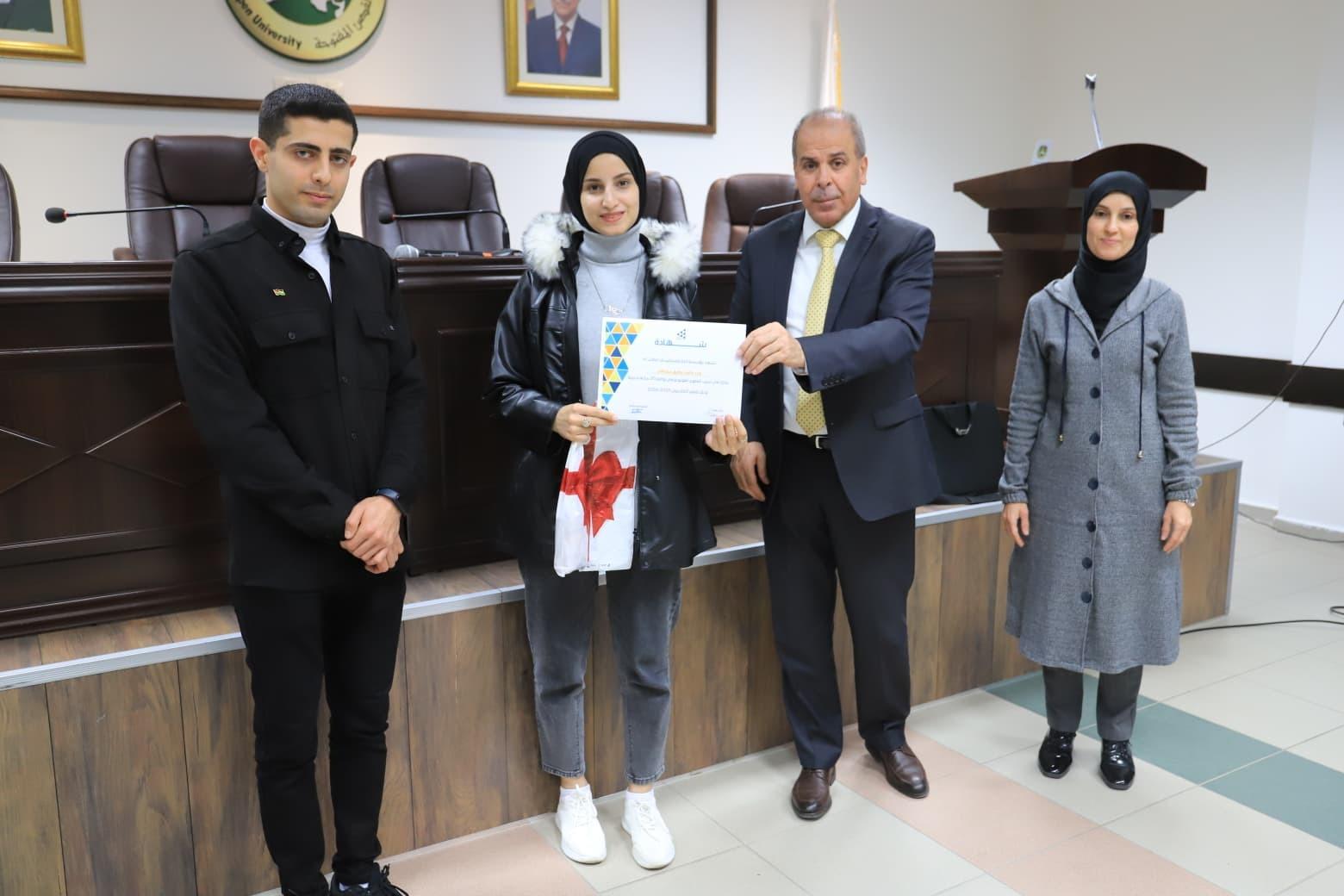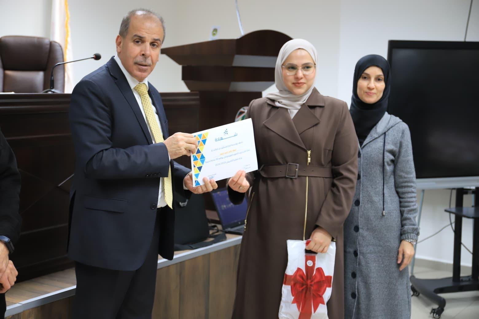 وألقى مدير فرع الجامعة د. عماد شتية، كلمة أكد فيها أهمية هذه الدورات النوعية في بناء شخصية الطالب الجامعي وتنمية مهاراته العملية إلى جانب الجانب الأكاديمي، مشيراً إلى أن الجامعة تسعى دوماً إلى توفير بيئة تعليمية محفزة للإبداع والابتكار، وتعزيز الشراكات مع المؤسسات الداعمة بما يخدم الطلبة والمجتمع المحلي، ومثمّناً جهود مؤسسة إنجاز فلسطين وقسم شؤون الطلبة والمدرب على ما بذلوه من عطاء أسهم في إنجاح الدورة وتحقيق أهدافها.