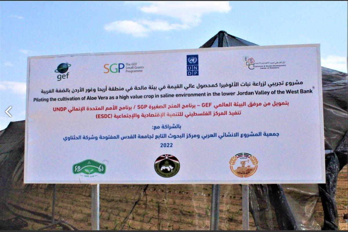 Al-Quds Open University took part in launching the pilot project of planting and producing Aloe Vera in salty mediums on Tuesday, 22 April 2022, represented by the Dean of the Faculty of Agriculture, Dr. Maen Sheqwarah and the Director of the Agricultural Research Center, Dr. Khaled Hardan. The project was funded by the Global Environment Facility (GEF), the Small Grants Program (SGP), and UNDP. It was implemented by the Economic & Social Development Centre of Palestine (ESDC) and the Agricultural Research Center, in partnership with the Arab Construction Project Association and al-Hathnawi General Trading Co.