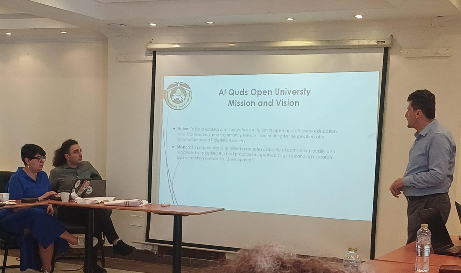 QOU was represented by Dr. Mahmoud Huwamdeh from the Partnerships and Advancement Unit at Al-Quds Open University , and Ms. Saba Farhana, Head of the Digital Production Department at the Center for Digital Learning.